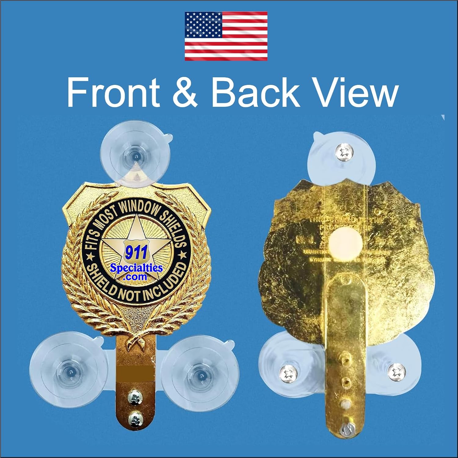 Y Style Heavy Duty PBA,FOP,FMBA, EMS Shield Holder for Car windshield. Made for larger shields. MADE IN THE USA by former Law Enforcement. Heavy duty suction cups minimum view obstruction. Police Fire