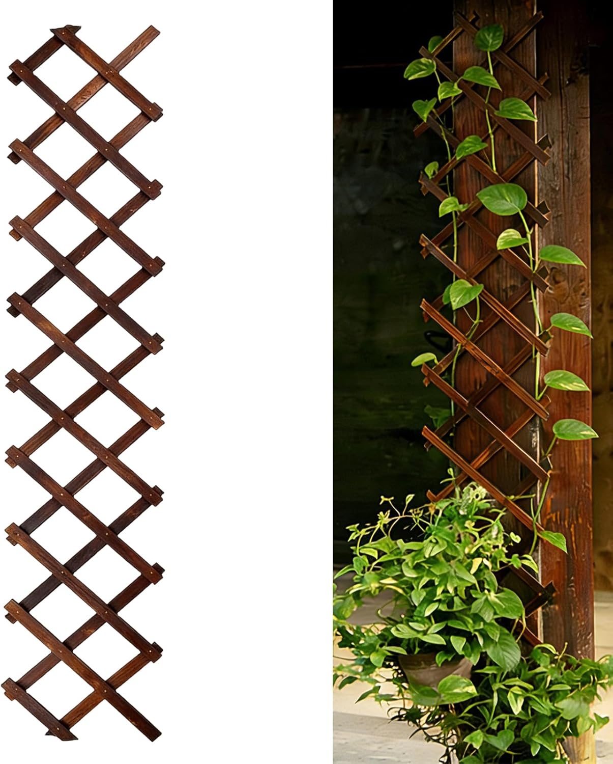 Expandable Garden Trellis, Wooden Lattice Wall Fence Trellis for Climbing Plants Ivy Vine Rose Clematis 13" x 68" for Outdoor Garden Patio Room Decor (1)