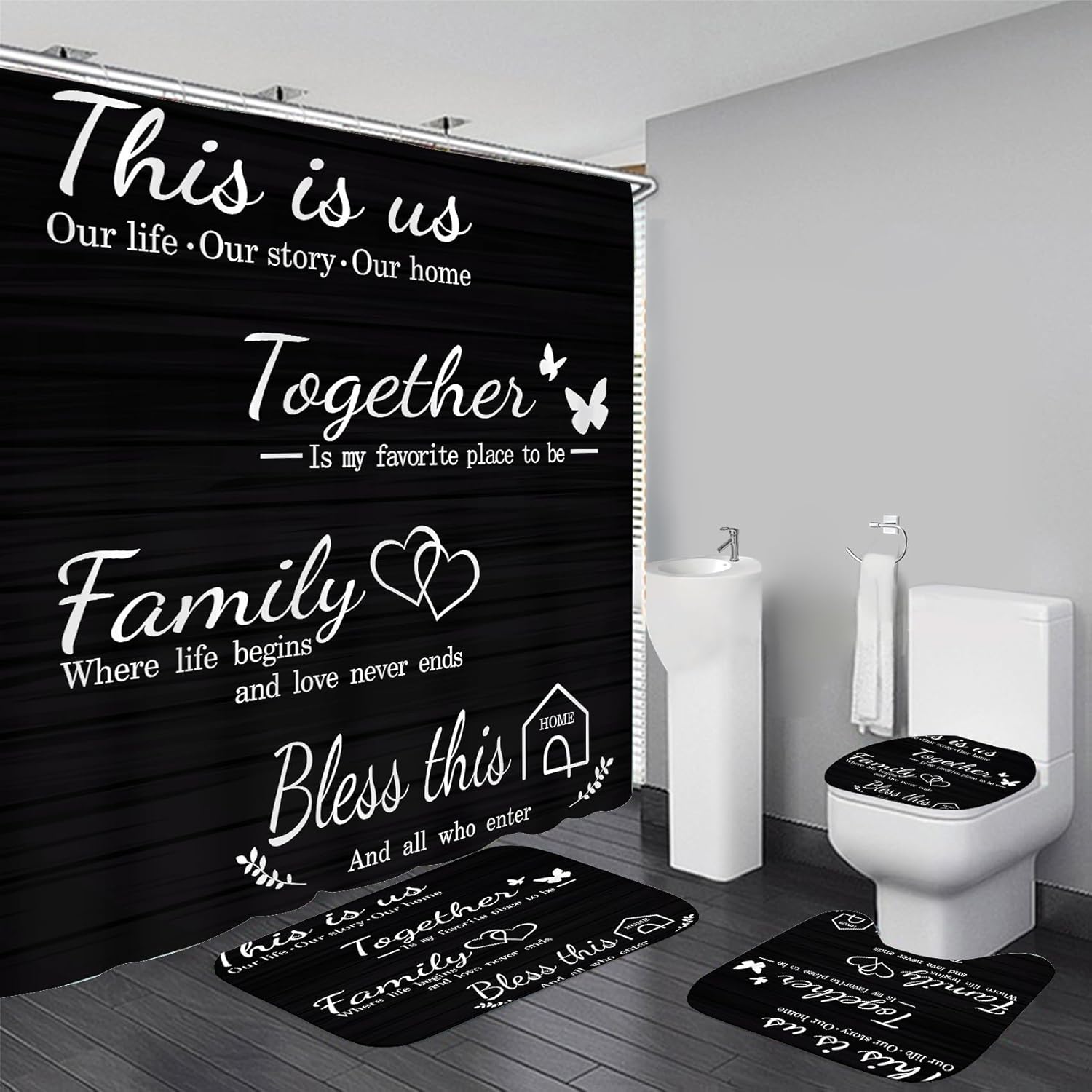 AZHM Family Shower Curtain Set Black Home Bathroom Set with Shower Curtain and Rugs and Accessories Bathroom Decor Curtain with 12 Hooks