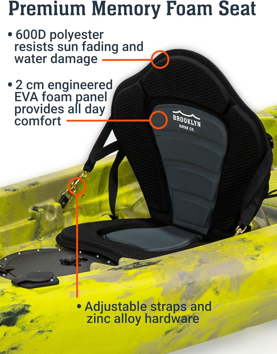 Brooklyn 12.5 Tandem Sit-On-Top Fishing Kayak by BKC, 2–3 Person Kayak with Padded Seats, Paddles, 6 Rod Holders, 600 lb Capacity, Motor-Ready