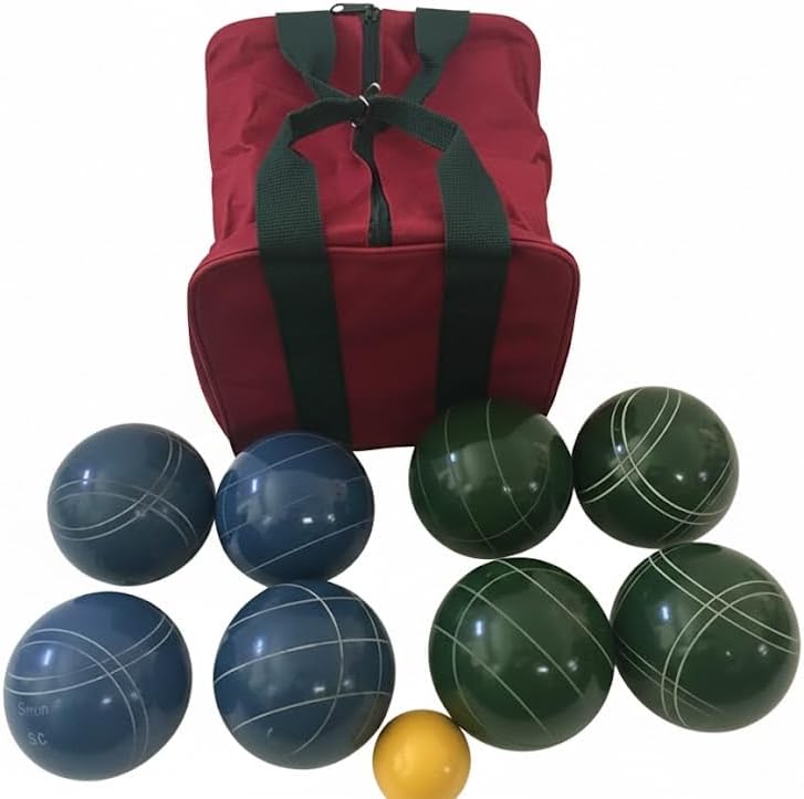 BuyBocceBalls Listing - Made in USA, Premium Quality Tournament Bocce Set - 110mm Blue and Green Balls, Nylon Bag, 998 Grams (2 lbs. 3.2 oz.). Various Bag Colors