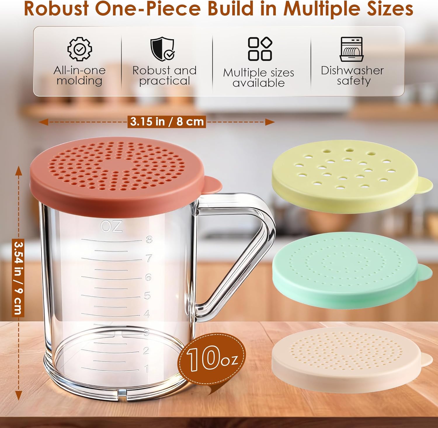 Dredge with Snap Lid, Seasoning Sugar Spice Shaker with 4 Interchangeable Lids 10 OZ Clear Spice Dredge for Cinnamon Sugar, Parmesan Cheese, Pepper, Dishwasher Safe