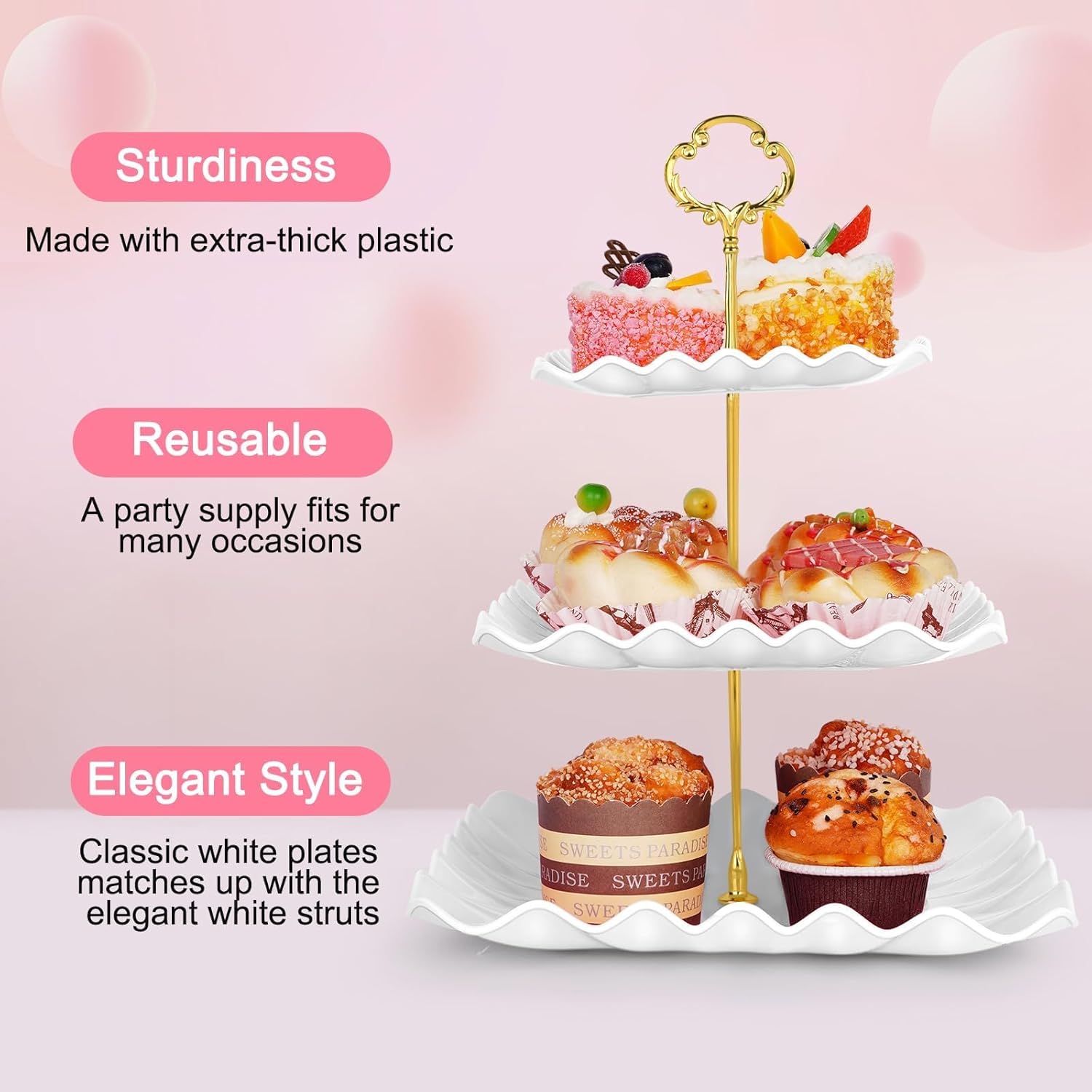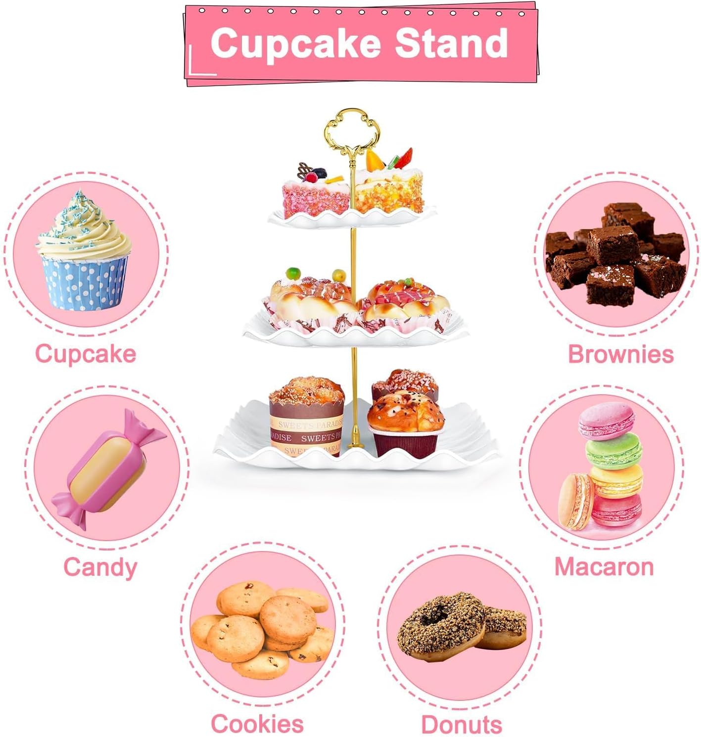 5 Pcs Dessert Table Display Set - 2 Pcs 3-Tier Dessert Display Stands & 3 Pcs Serving Tray - Dessert Trays Dessert Stands Treat Table Displays Set for Tea Parties,Birthdays & Baby Showers