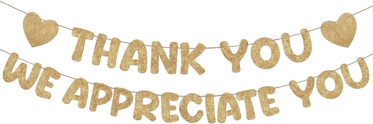 Fulmoon Pre Strung Thank You We Appreciate You Glitter Banner Funny Appreciation Banner for Employee Coworker Staff Teacher Thank Sign Party Decorations(Champagne Gold)