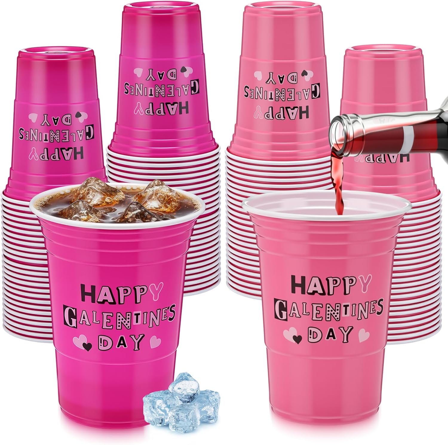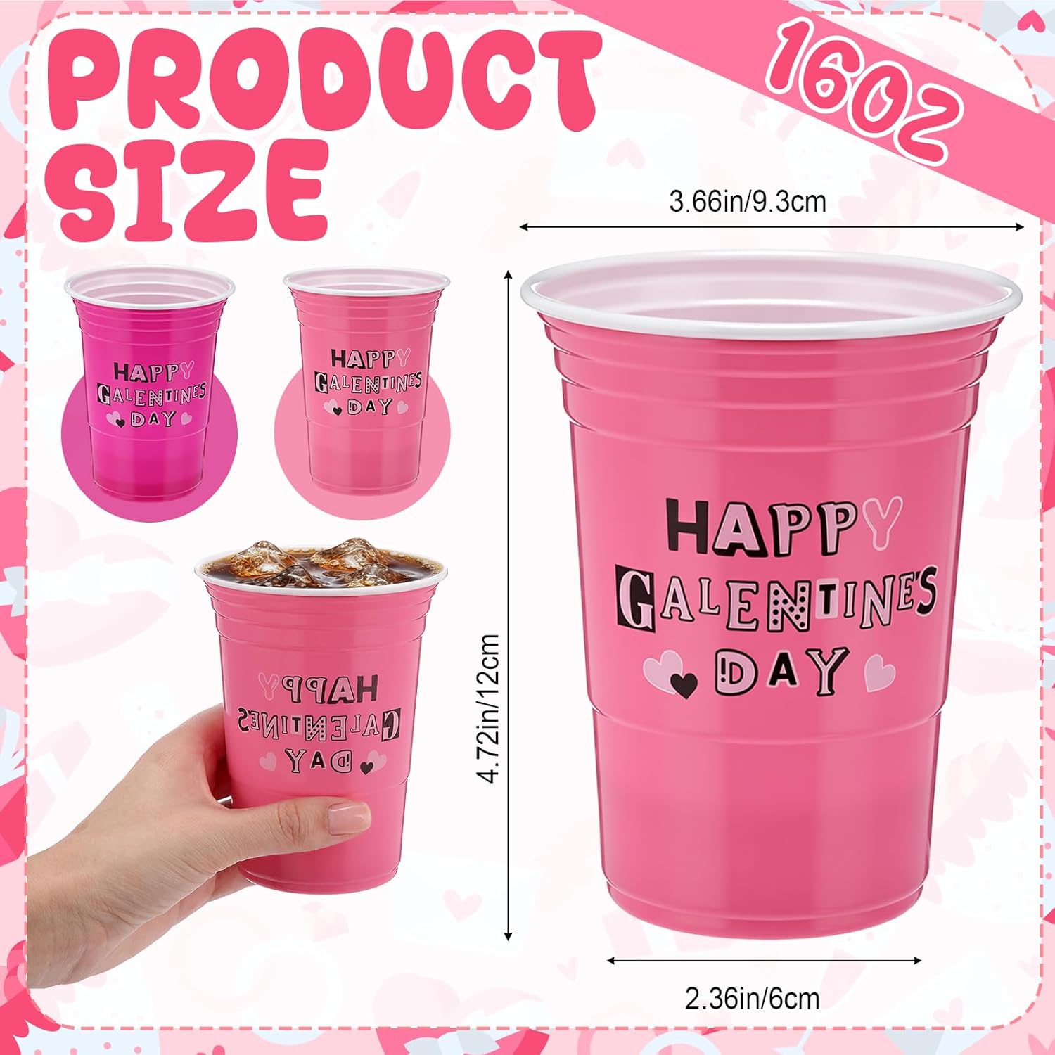 Yungyan 50 Pcs Galentines Day Plastic Cups Galentine's Day Gifts Party Favors 16 oz Reusable Pink and Hot Pink Heart Tumblers Bulk for Women Girl Lady Friend Cold Drink Party Favor Decoration