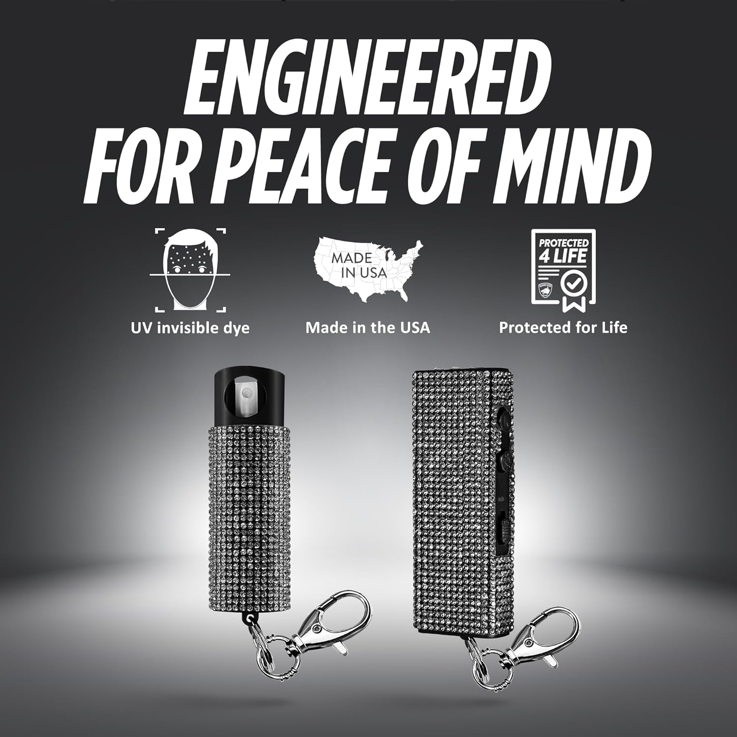 Guard Dog Security Bling It On Stun Gun and Pepper Spray for Self Defense, Fashionable Self-Defense Keychain Set for Women, Glow-in-The-Dark Actuator, 16-Ft Range, USB Rechargeable