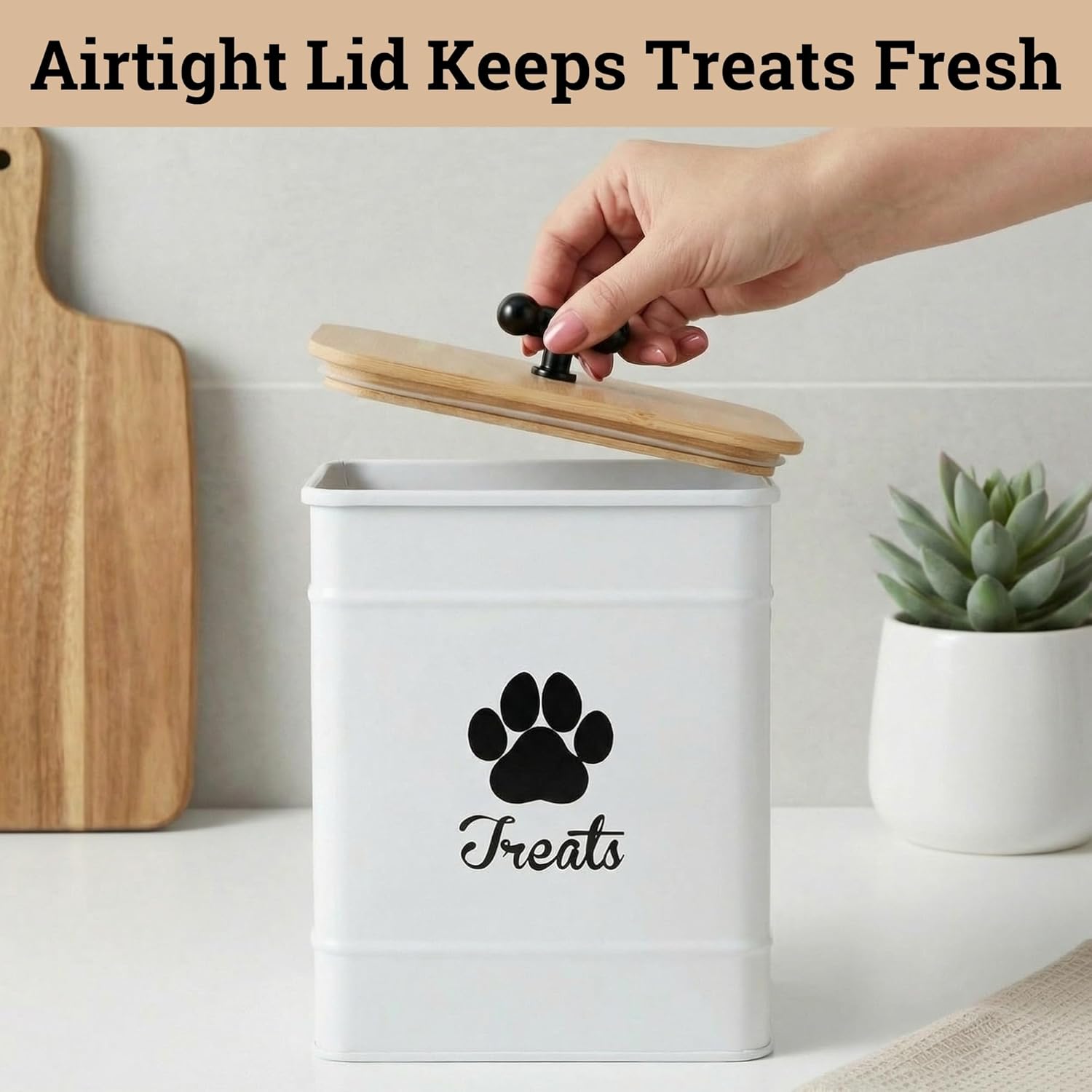 Dog Treat Container Airtight - 6 Inch Wide x 8 Inch Tall Iron Dog Treat Jar for Kitchen Counter with Airtight Bamboo Lid - 12 Cup Capacity Pet Treat Container - Doggie Cookie Jar - Big Treats Canister