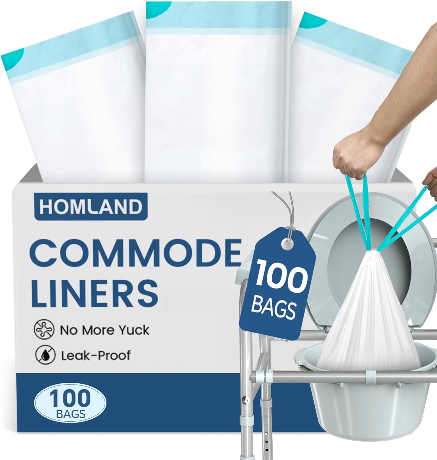 HOMLAND Commode Liners for Bedside Commode, 100 Pack Disposable Portable Toilet Bags for Potty Chair Bucket, Bedpan & Camping Toilet, Leak-Proof Universal Fit Bedside Commode Liners