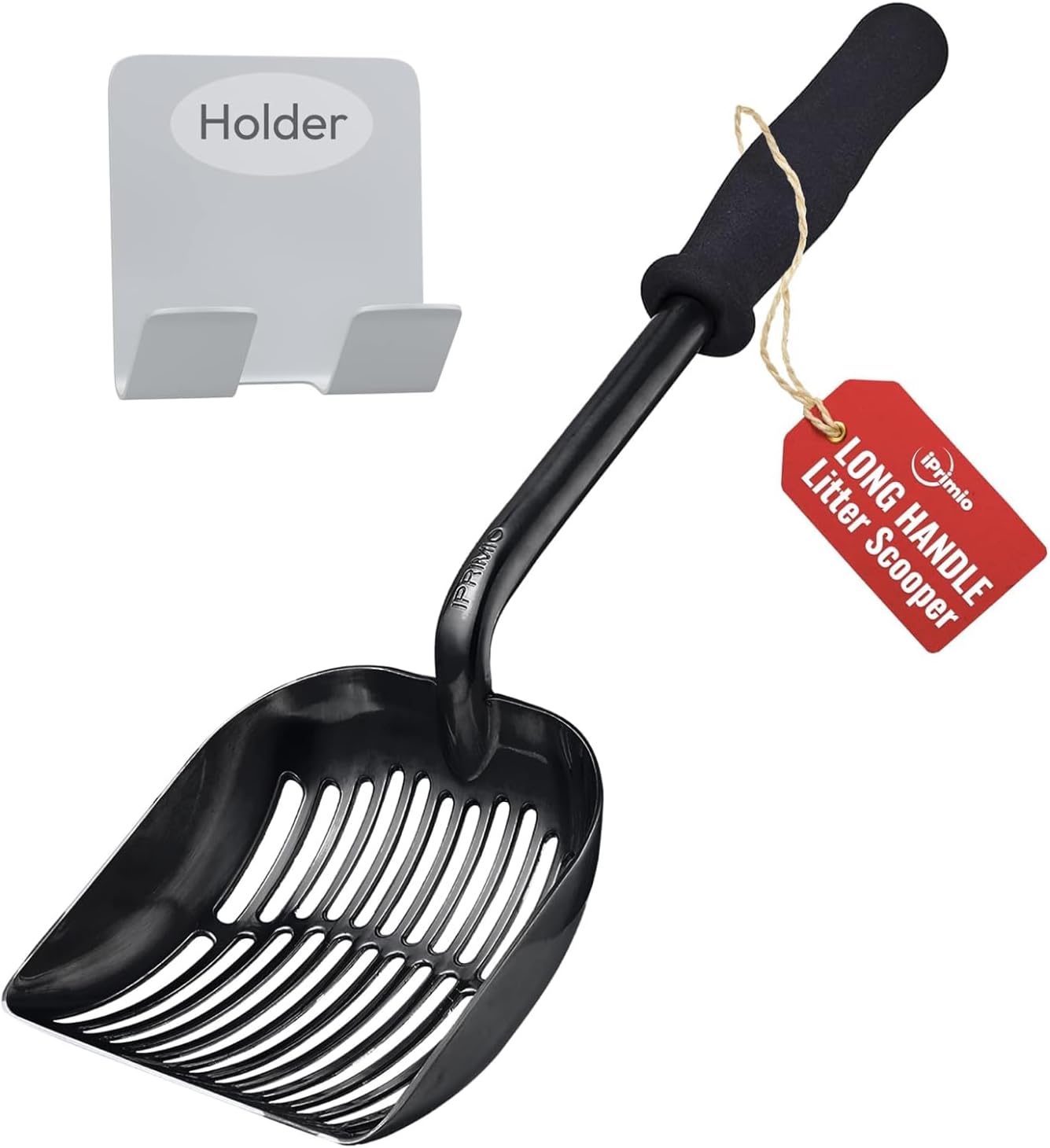 iPrimio Cat Litter Scoop Metal w/ Deep Shovel, Black - Non Stick Plated Aluminum Cat Litter Scooper with Holder - Litter Box Scooper - Metal Cat Litter Scoop - Patented Sifter w/ Holder - Solid Handle