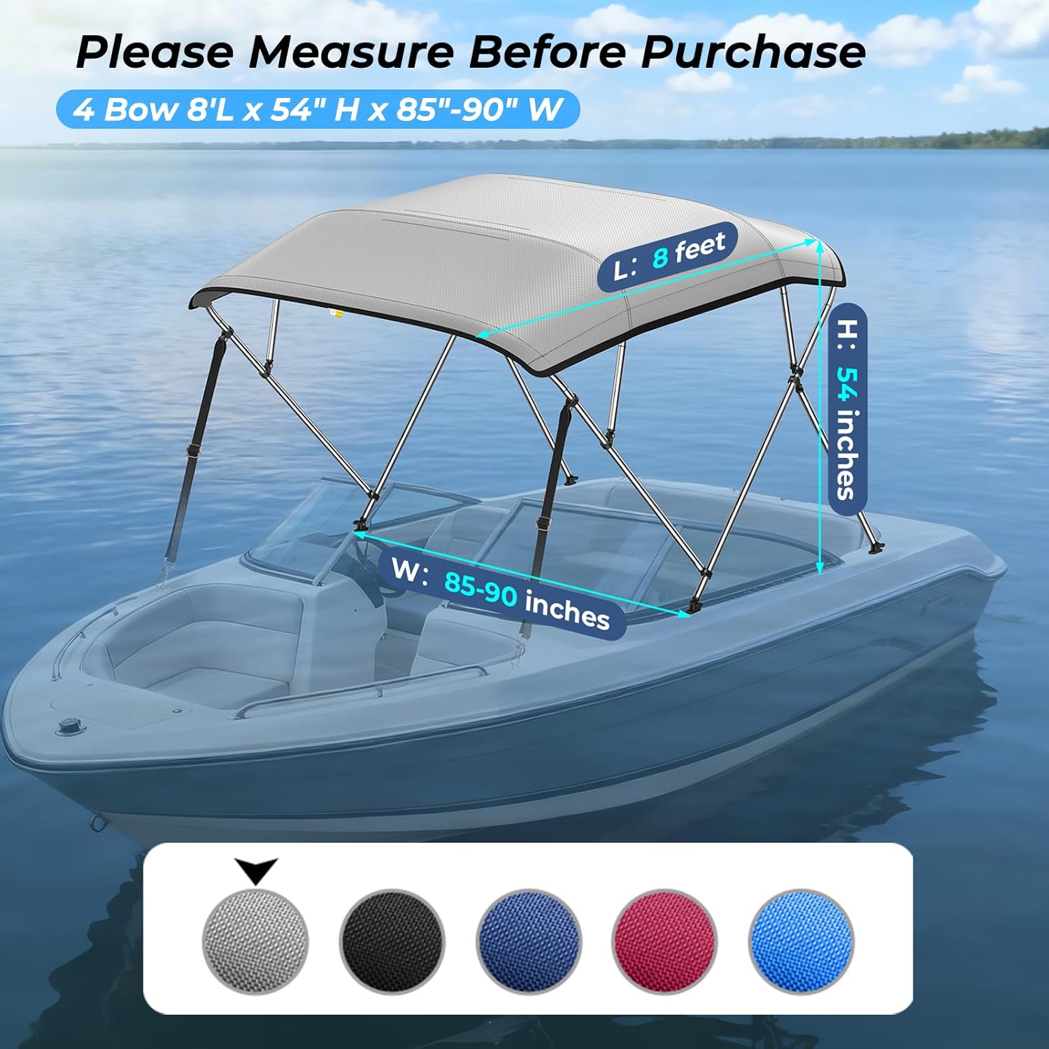 KAKIT 3 4 Bow Bimini Tops for Boats with Mesh Sides Heavy Duty Cover Adjustable 4 Straps Zippered Storage Boot