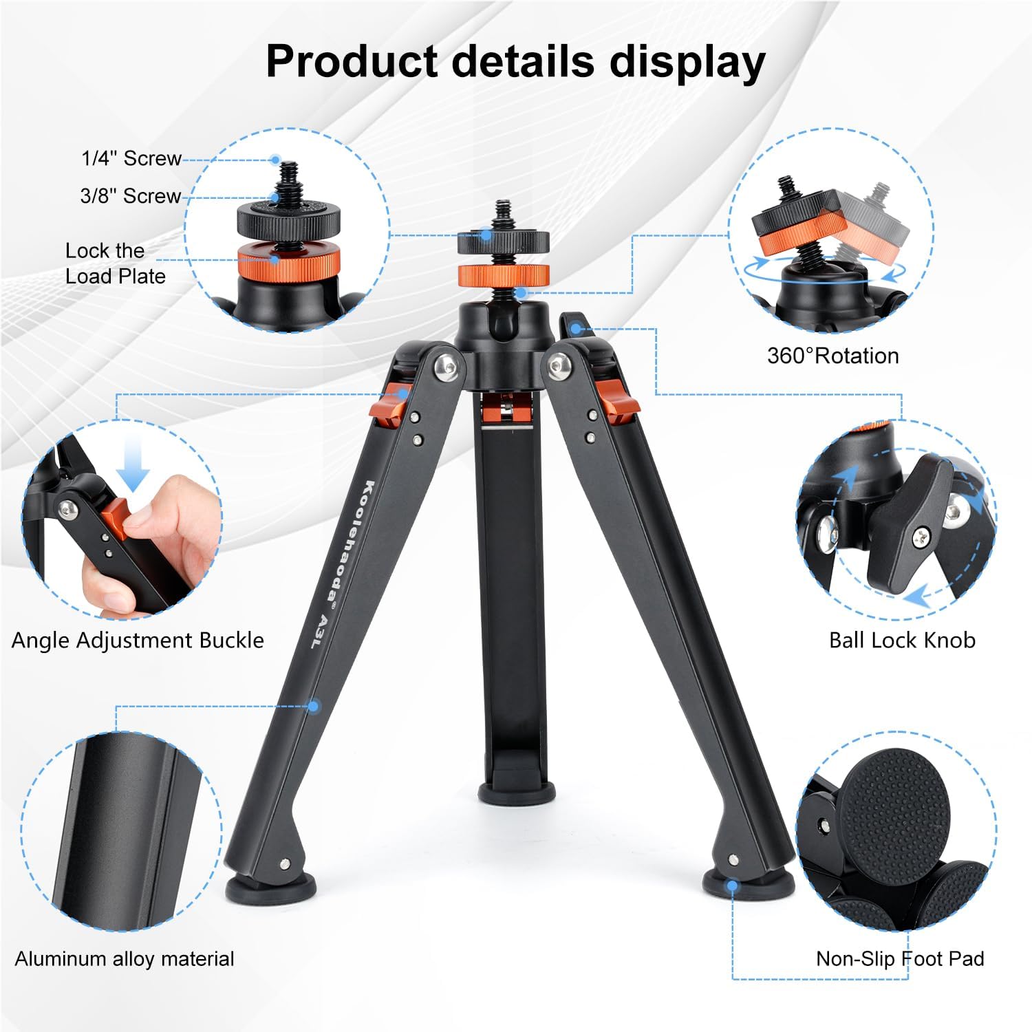 Koolehaoda Mini Tripod,Universal 3 Legs Monopod Base Stand Unipod Support with 3/8" Screw for Monopods Ballhead - A2