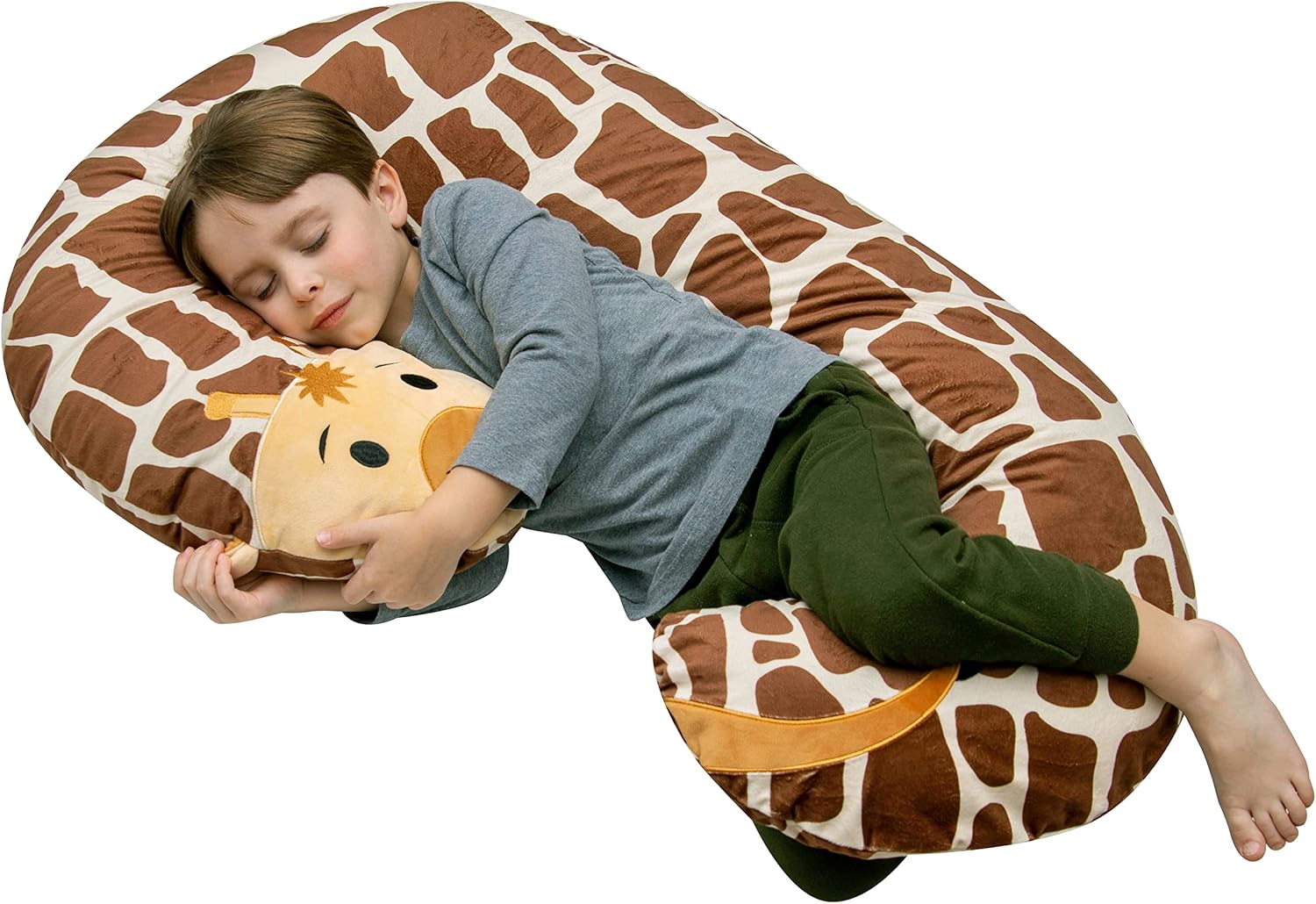 Leachco Snoogle Jr. Child-Size Body Pillow │ for Kids Ages 3 and Up │Polyester Plush Zippered Removable Cover - Giraffe