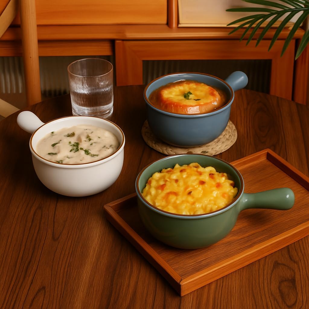MONITO 16 Oz French Onion Soup Bowls, Ceramic Soup Bowls with Handles, Stackable Soup Crocks Oven Safe for Chili, Beef Stew, Cereal,Casseroles Microwave & Dishwasher Safe, Set of 4
