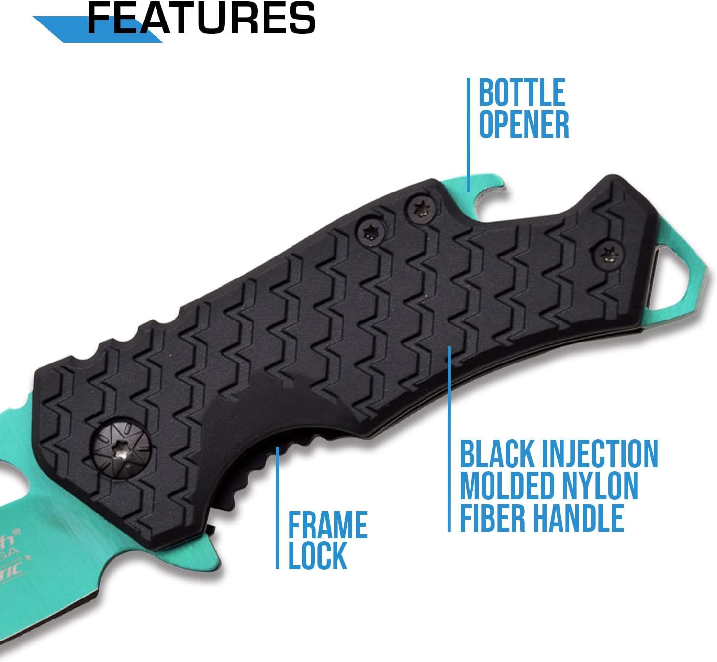 MTech USA – Pocket Folding Knife – Fine Edge Steel Blade, Aluminum/Nylon Fiber Handle, Bottle Opener and Pocket Clip, Tactical, EDC, Self Defense- MT-A882