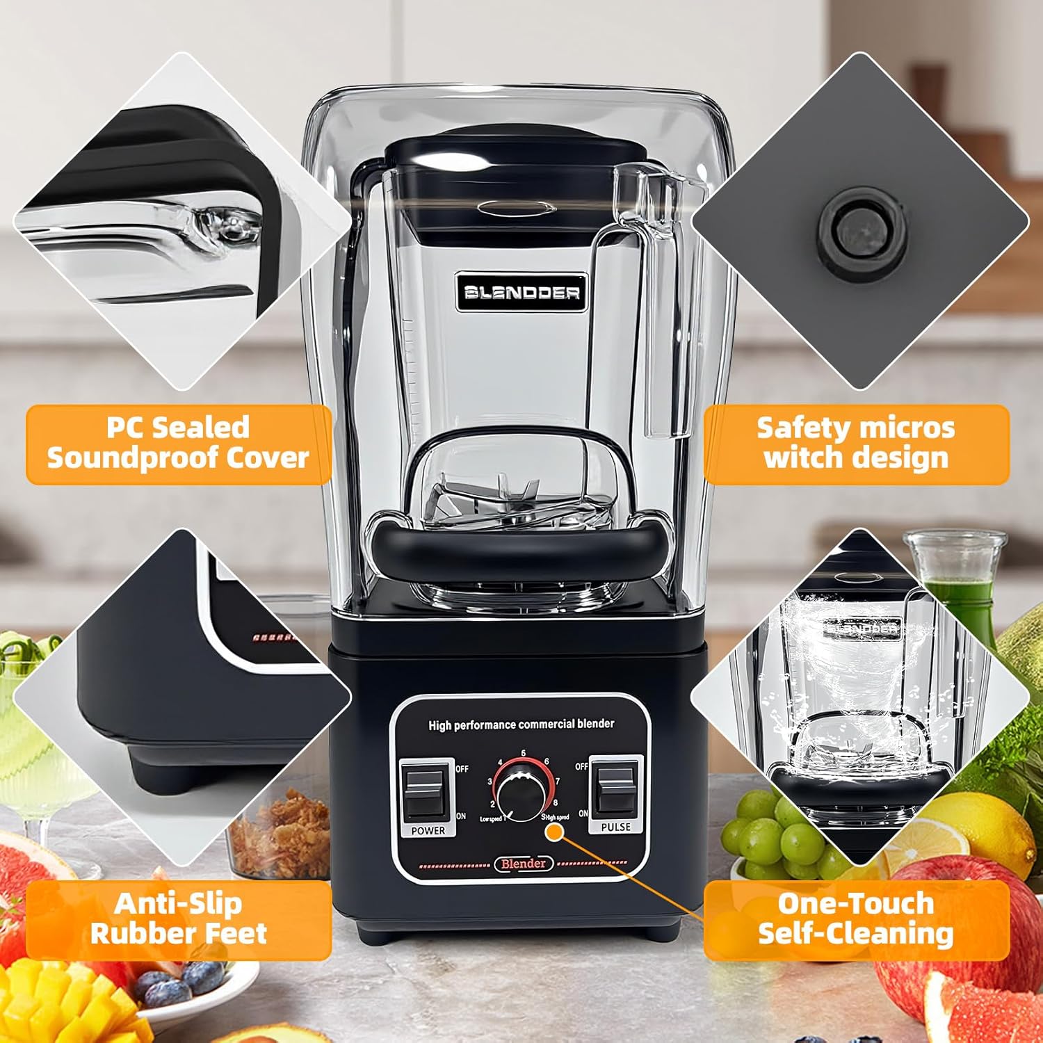 Commercial Blender Heavy Duty Restaurant, Professional Quiet Blender,1800W Commercial Mixer for Smoothies, Noise Reduction Blenders for Kitchen and Business (Model: G7)