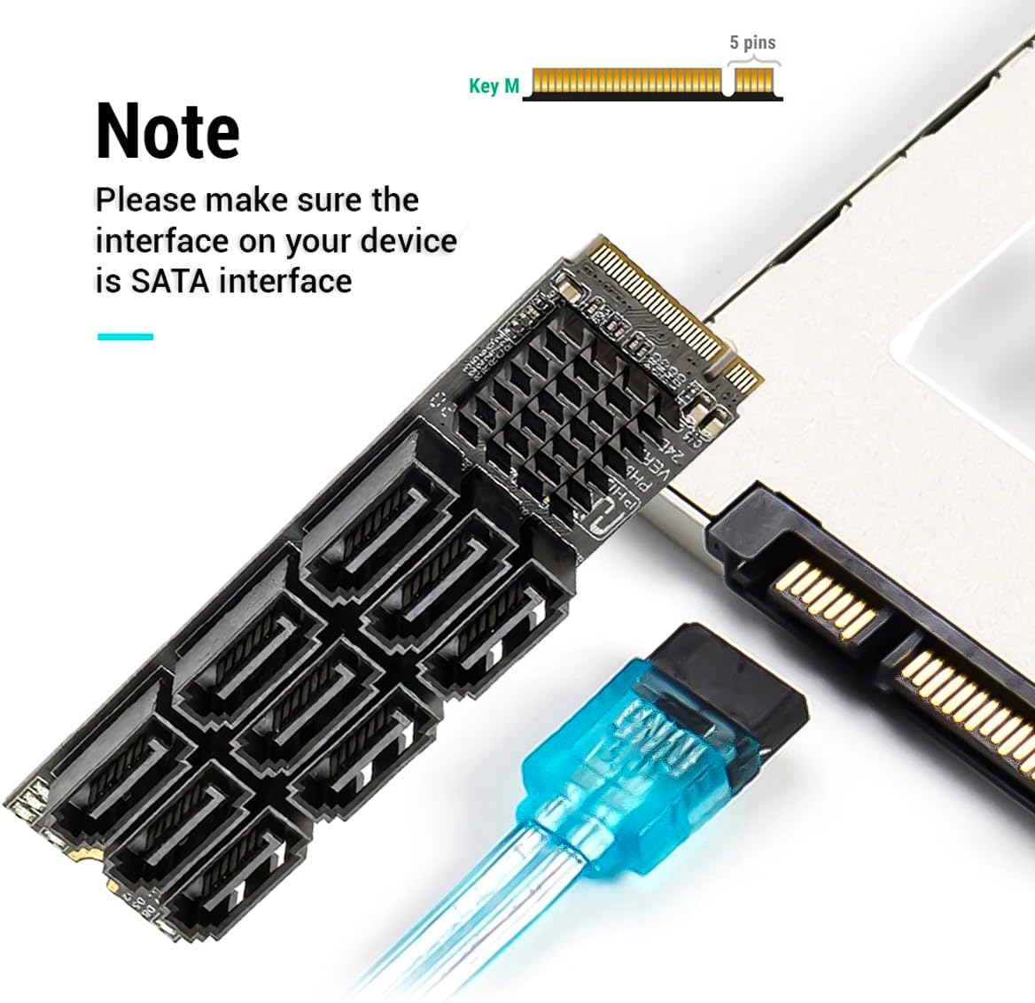 NVME M-Key PCI Express M.2 NGFF to 9 Ports SATA 3.0 6Gbps Adapter Converter Hard Drive Extension Card 2280 for NAS Computer (9-Ports)