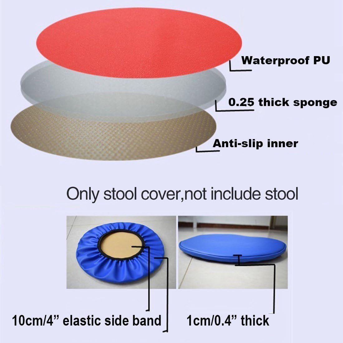 Sigmat 2 Pack Waterproof PU Bar Stool Cover Anti-Slip Round Seat Cover 14.5 Inch Black