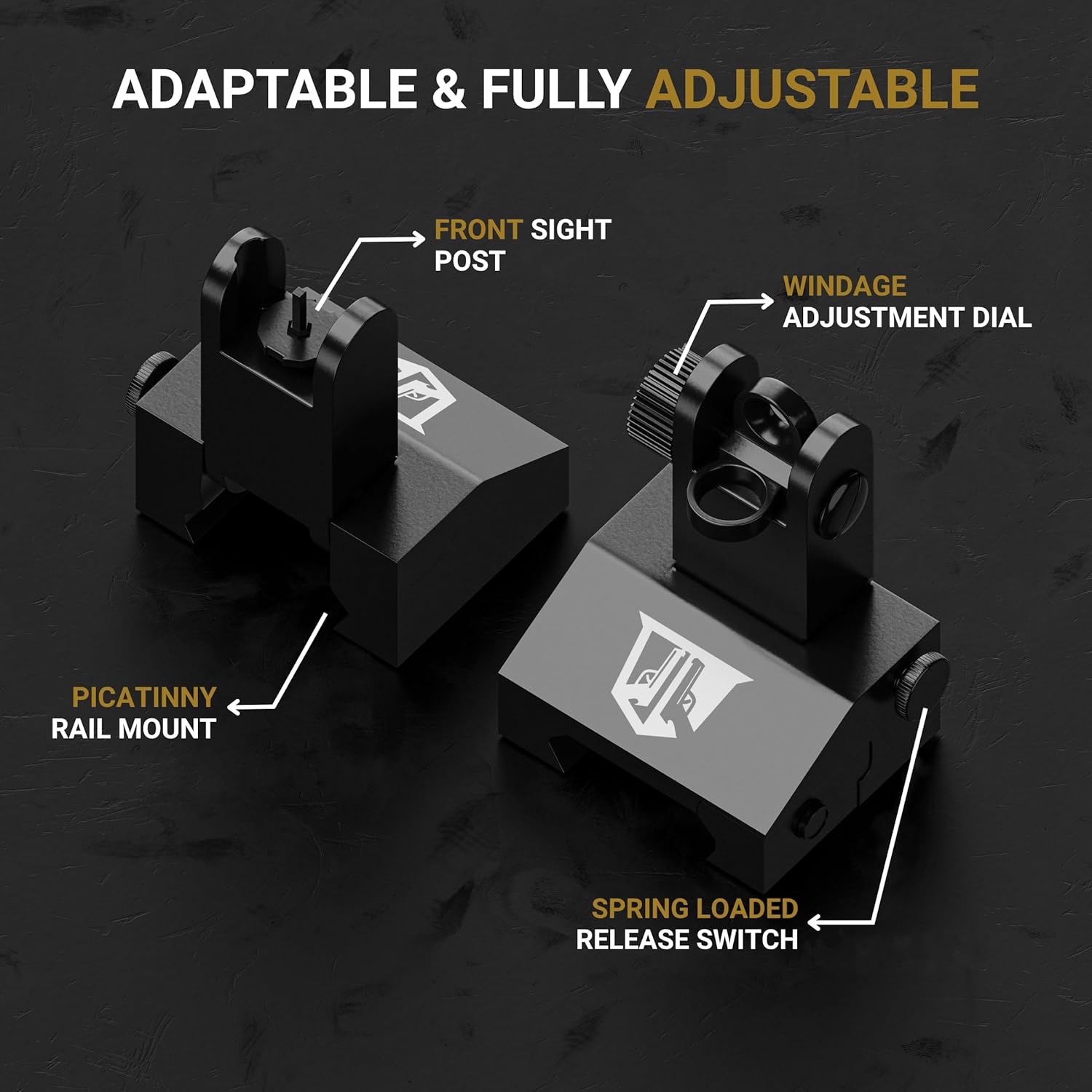Flip Up Iron Sights - BUIS Flip Up Sights Rail Mounted - Front and Rear Sight Set