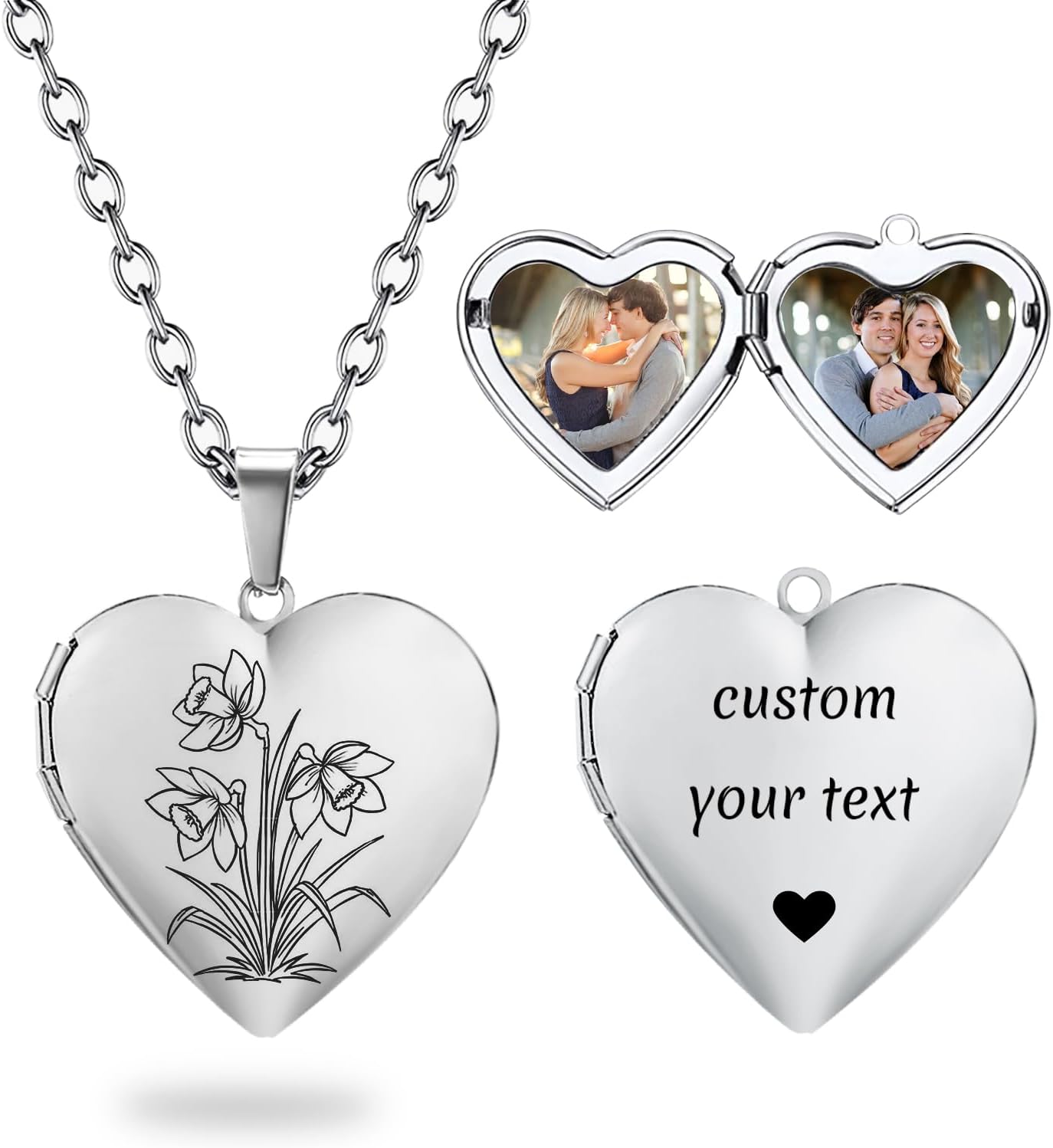 PHOCKSIN Personalized Locket Necklace for Women Photo Necklace with Customized Picture Birth Flower Birthstone Customizable Birthday Gifts
