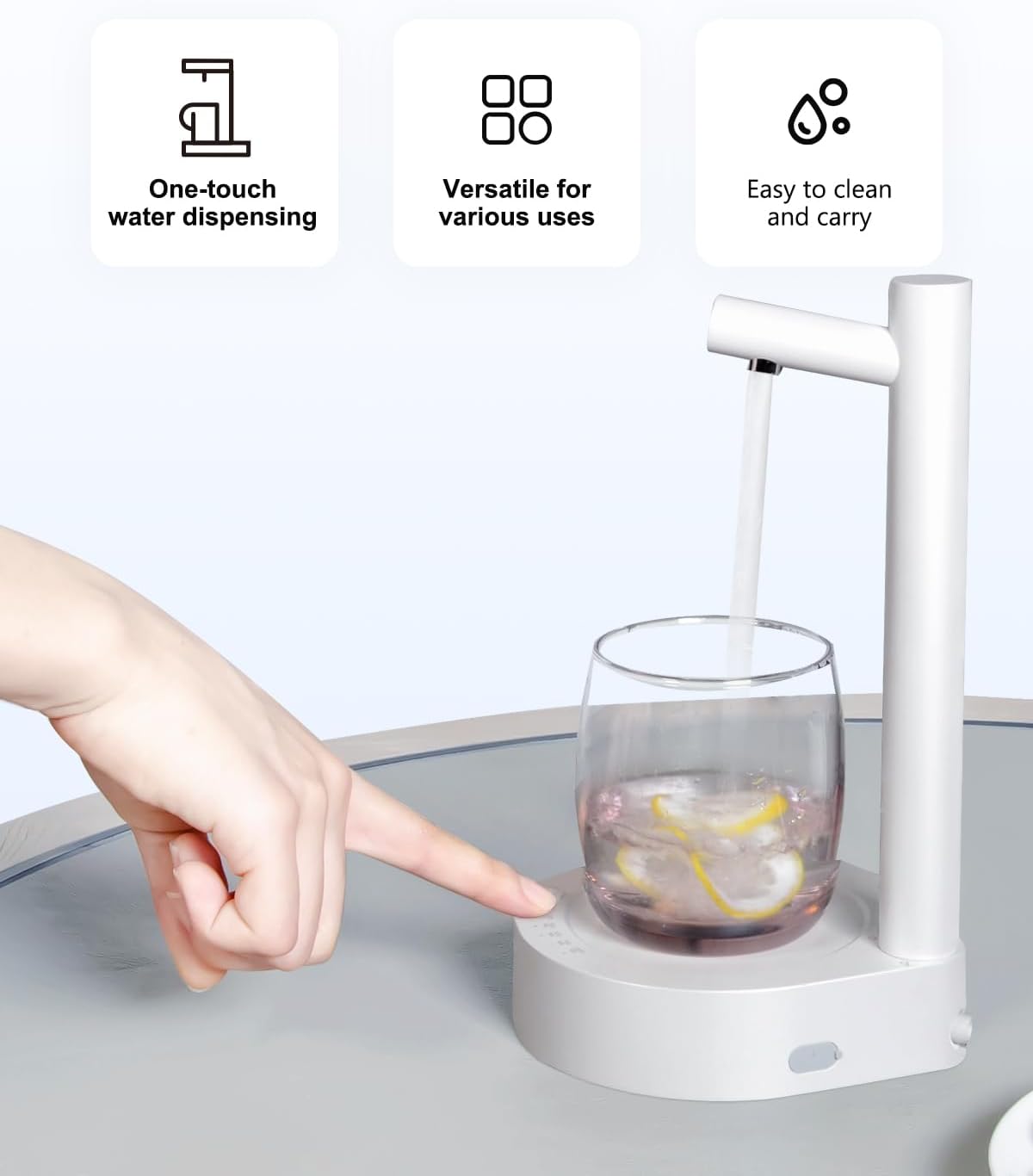 Desktop Water Dispenser for 5 Gallon Bottle, PLUZZ Portable Small Electric Water Pump for 5 Gallon Jug for Home, Office, Camping, Outdoor, Easy & Useful Navy Blue Rechargeable Countertop Water Pump