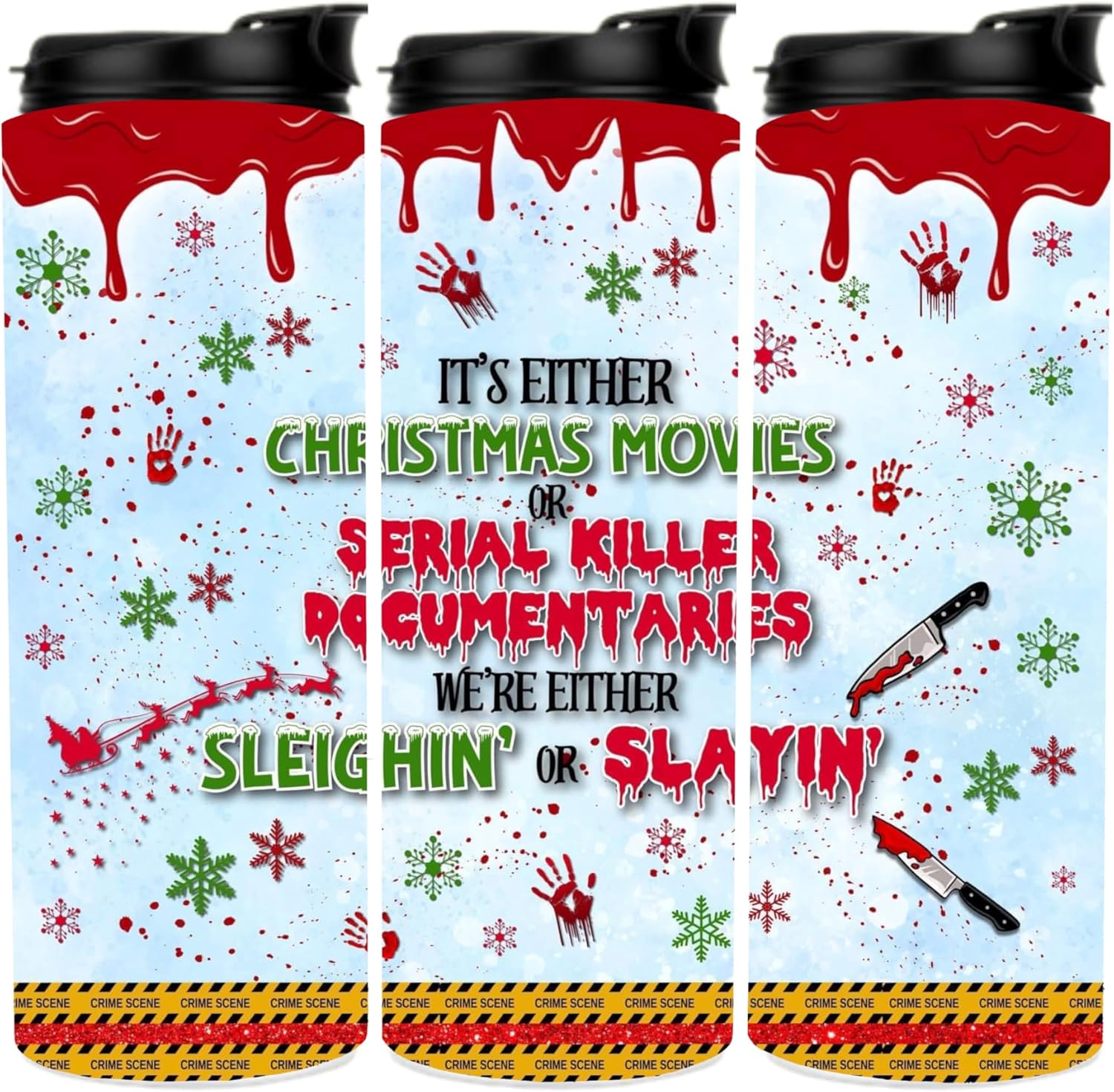 Personalized Serial Killer Documentaries or Christmas Movies Tumbler 20oz | "Sleighin' or Slayin'" Funny True Crime Holiday Travel Mug | Xmas White Elephant Gifts for Women Men Coworkers