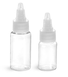 1/2 oz Clear PET Round Bottles w/Natural Twist Top Caps