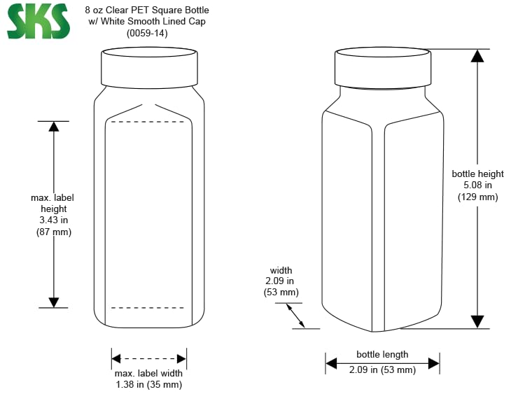 SKS Bottle & Packaging 8oz Bottles - Clear Plastic Square Bottles with Smooth White PE Lined Caps, 8 Oz Plastic Bottles, Easy Fill Wide Mouth Empty Plastic Containers, Made in USA, Case of 24