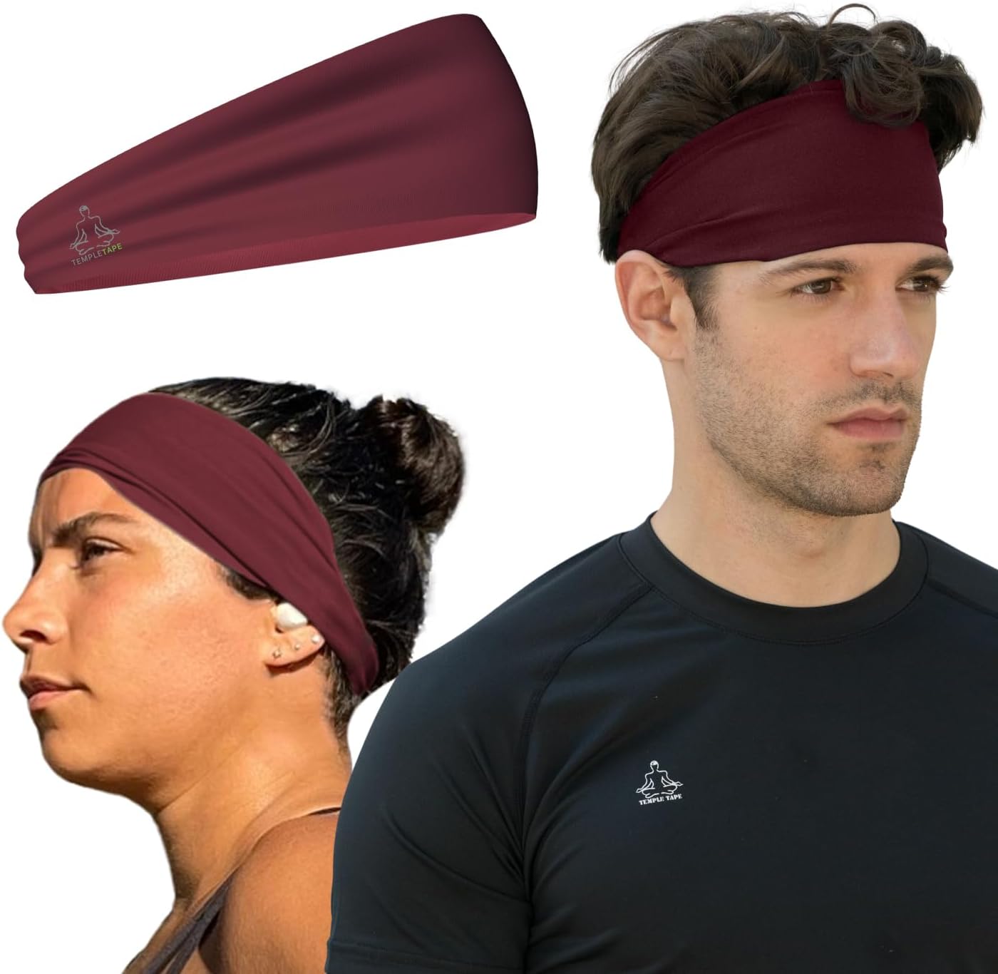 Temple Tape Sweat Band Workout Headbands for Women and Men - Sweatbands for Men - Moisture Wicking Sports Sweat Bands Headbands for Women, Running,Cycling,Yoga,Football Headband