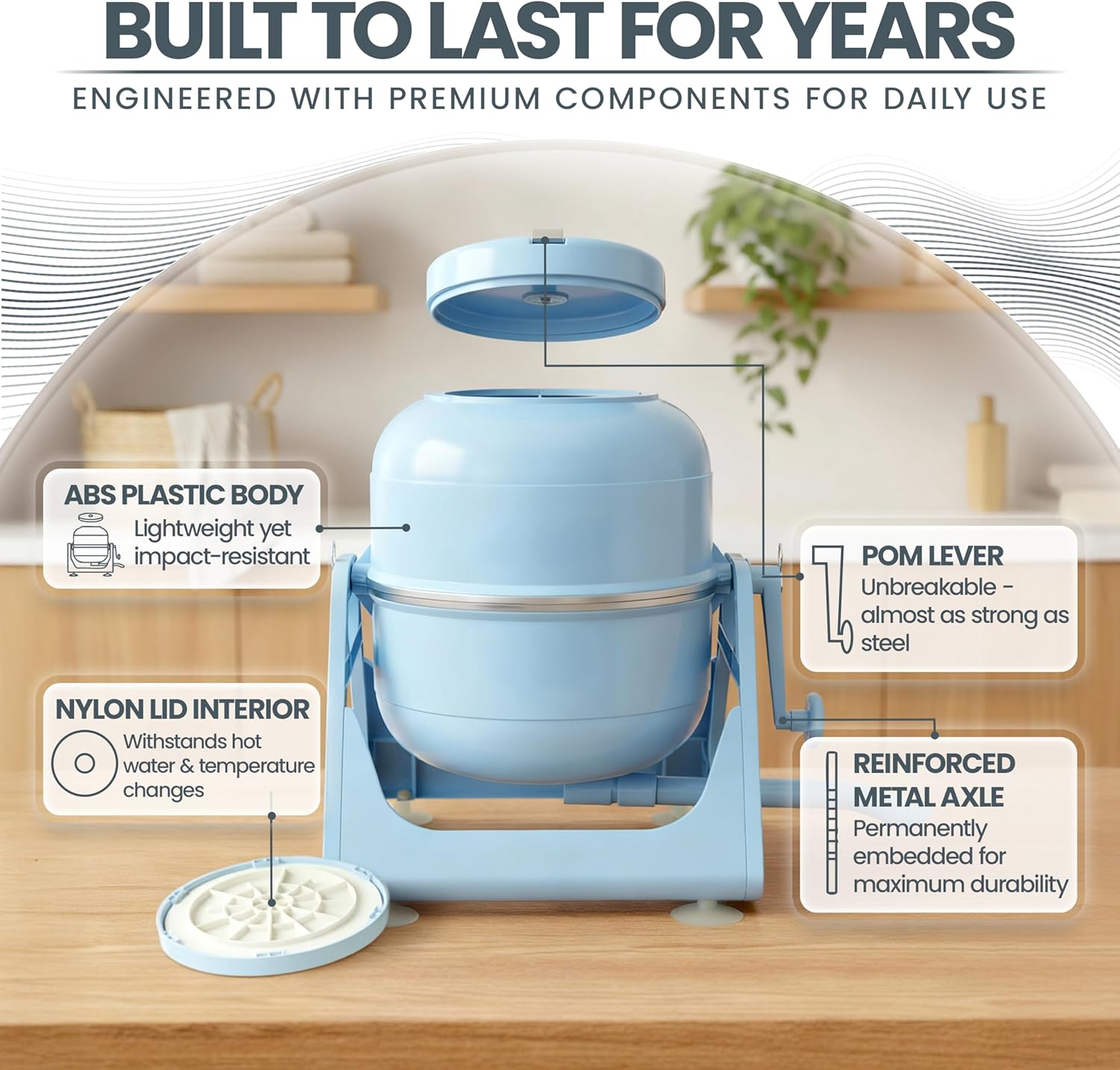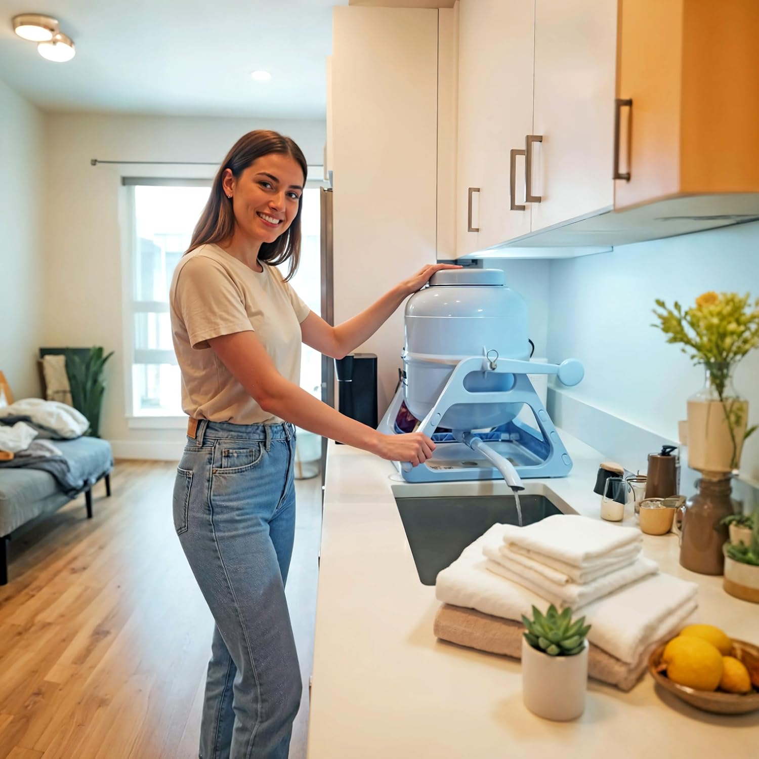 WonderWash Portable Washing Machine for Apartment & Tiny Spaces - Manual Hand Clothes Washer with Retro Design - Clean Laundry Anywhere with Our Countertop, Non-Electric, Small Washer - Blue