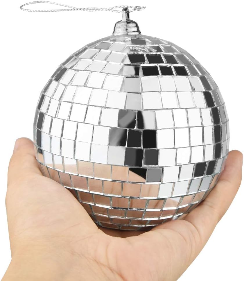2 Pieces Disco Mirror Balls Silver Hanging Ball for 50s 60s 70s Disco DJ Light Effect Party Home Decoration Stage Props Festivals Party Favors and Supplies 4 Inch (4inch, Silver)