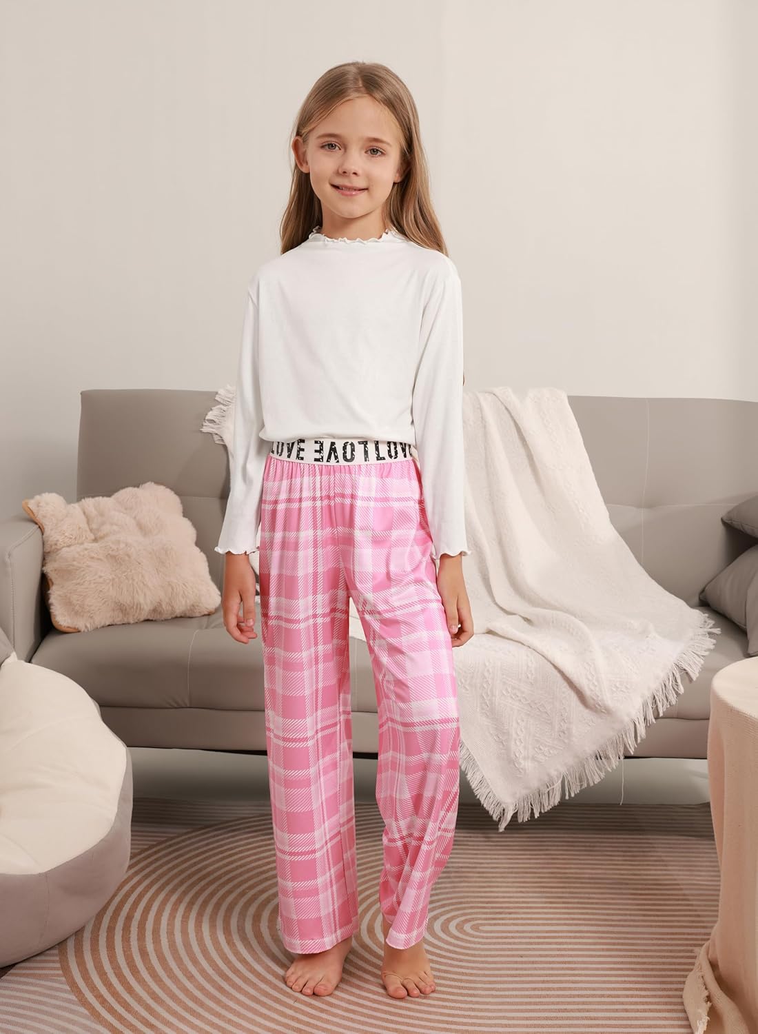 Kids Pajamas Pants Girls Boys Elastic Waist Plaid Pants Soft Lounge Wide Leg Pants 7-14 Years