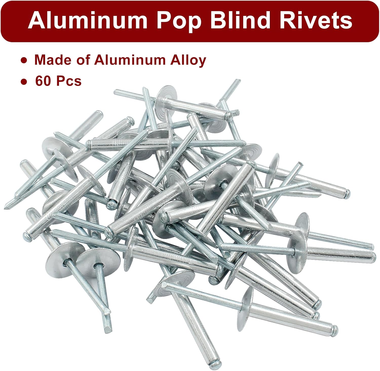 60 Pcs 3/16" x 1-1/4" Large Flange Aluminum Blind Rivets Dome Head Pop Rivets for Installing Accessories, Silver