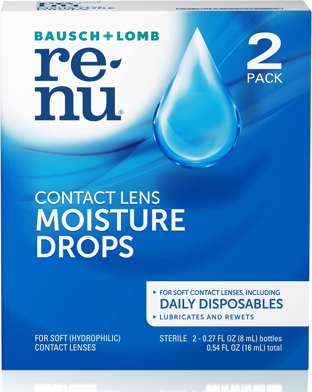Renu Lubricant Eye Drops, Rewetting Drops for Contact Lenses, Rehydrates Soft & Disposable Lenses, Soothes & Moisturizes Eyes for Comfort, 0.27 Fl Oz (Pack of 2)