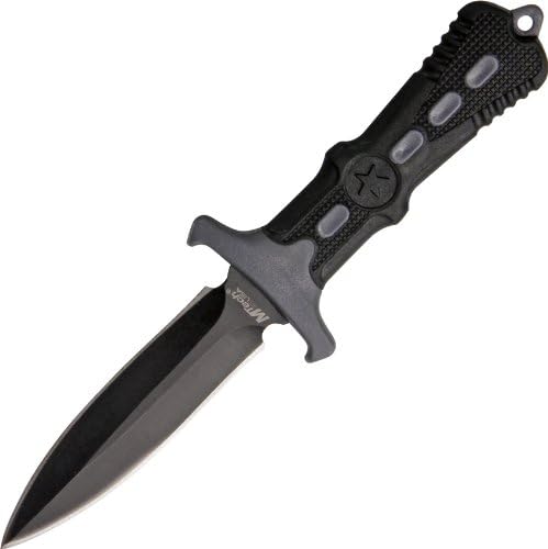 Product Description This neck knife from M-Tech has a 440 black stainless steel dagger blade offering superior strength and quality. The molded ABS handle is black with grey trim and has an integrated guard offering added protection. The molded black sheath comes with a beaded neck chain ensuring that this trusty knife is always within reach. Great for combat this knife is a real winner. From the Manufacturer MTech USA MT-20-14GY Fixed Blade Neck Knife, Black Blade, Black/Grey Handle, 6-1/2-Inch Overall