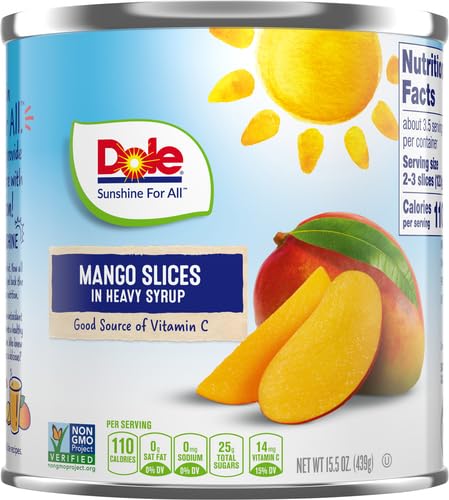 - •ALL NATURAL FRUIT: DOLE Mango Slices in Heavy Syrup are rich in Vitamin C, and made from all natural fruit and non-GMO ingredients. They're Kosher and great for recipes or just on top of cottage cheese or yogurt!