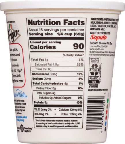 - •Frigo whole milk ricotta cheese has a softer and creamier texture than part-skim ricotta