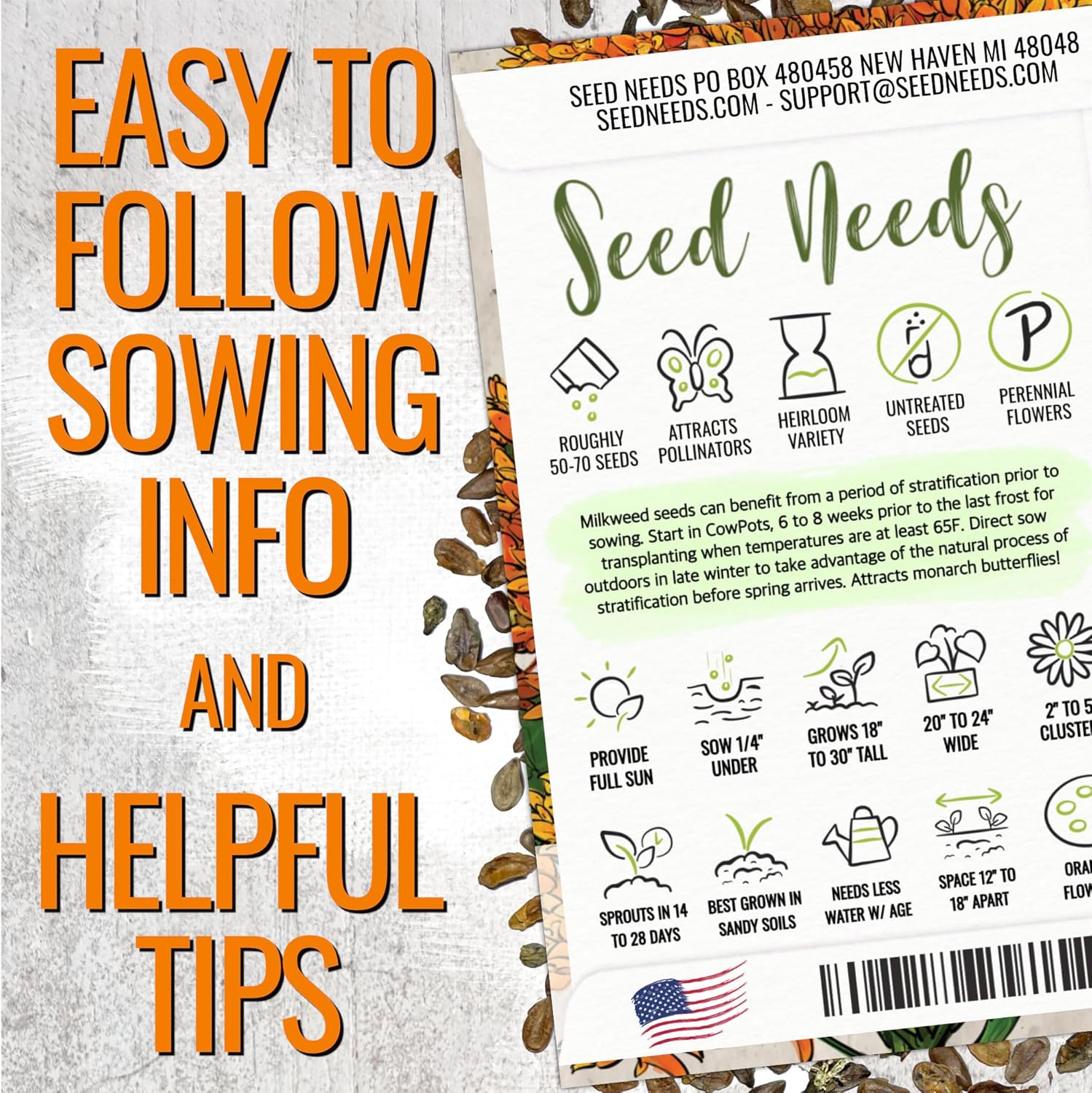 Seed Needs Milkweed Seeds for Planting a Butterfly Garden to Attract Monarch Butterflies - Collection of Pink, Orange & White Asclepias Milk Weed Variety Pack (5 Packs)