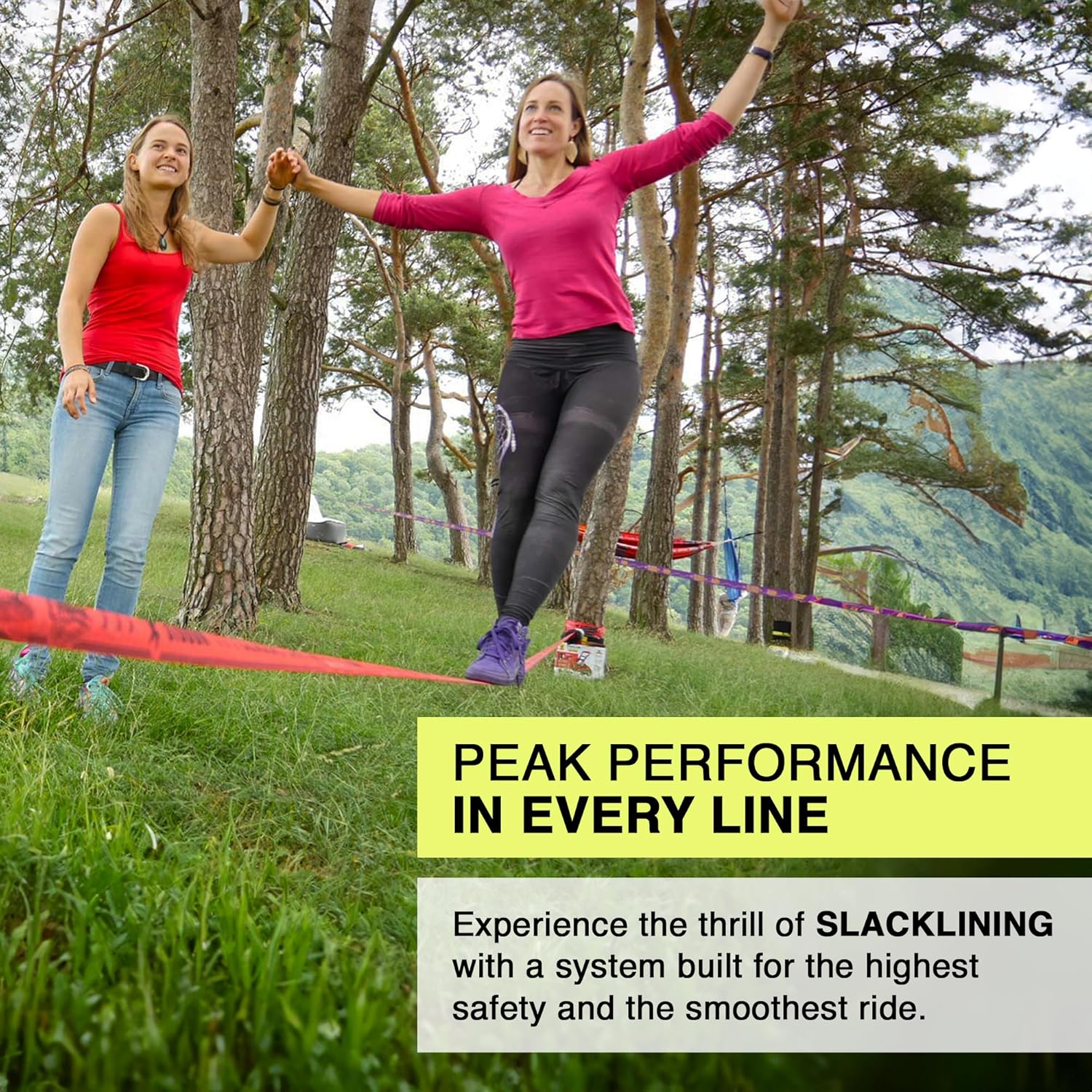 - •A Classic for Beginners or Pros — This slack lining kit features an 82ft ClassicLine with integrated ratchet protection, ensuring smooth handling and consistent performance. Perfect for all ability levels, this slack line set facilitates effective training across various lengths. The straightforward design enhances setup accuracy by preventing twists, making every setup flawless.