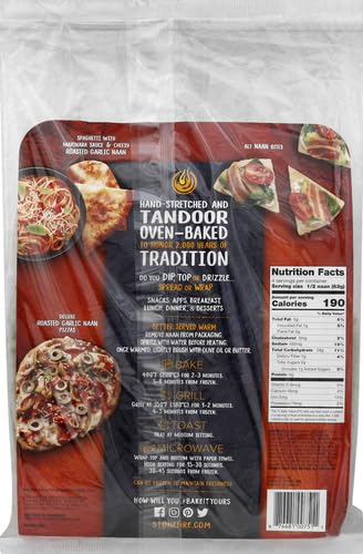 Stonefire Naan made with fresh buttermilk, real eggs, and ghee, hand stretched and baked in a tandoor oven.