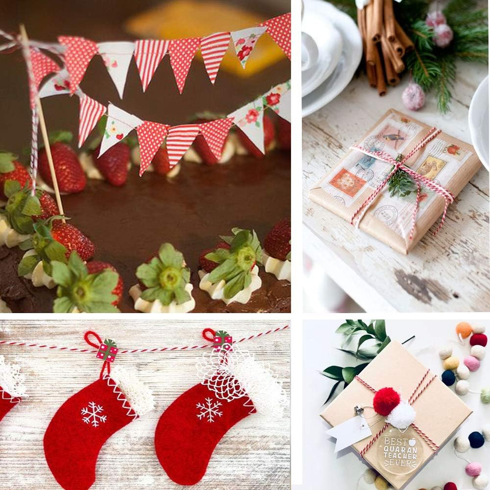 Cotton Twine Red and White Baker String 2mm Thick 328 Feet Christmas Twine for Gift Wrapping DIY Crafts Home Decoration Gardening