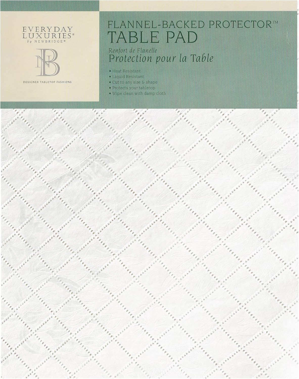 - •Newbridge Quilted Waterproof Cut to Fit Table Pad Protector with Flannel Backing, Heat Resistant, Wipe Clean, Cushioned Pad Protects Table from Spills and Scratches, 52" x 70"