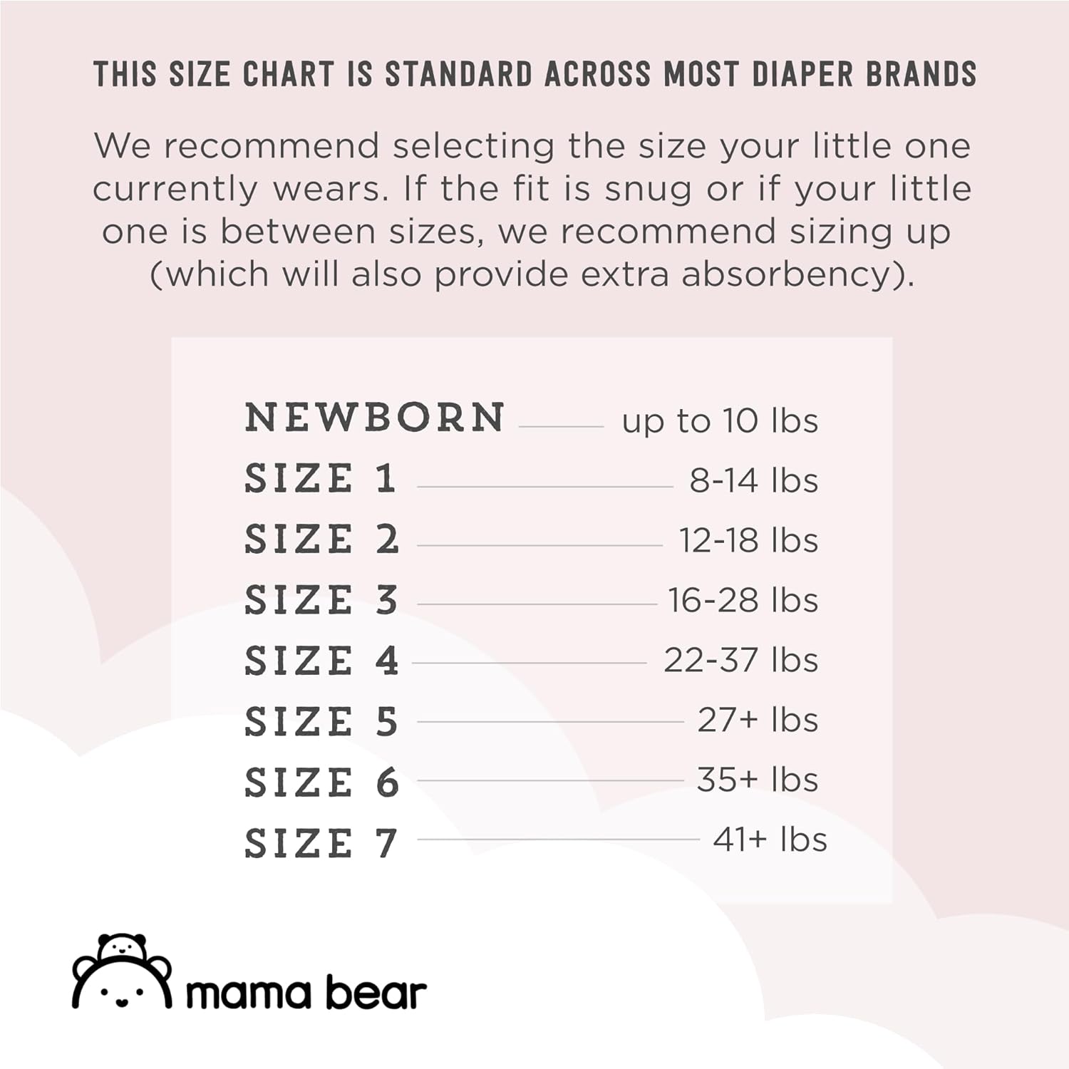 - •Go with the size your cub currently wears; If the fit is snug, size up for comfort and extra absorbency