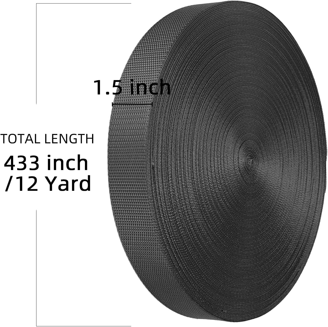 Nylon Webbing 1 Inch 1.5 Inch, Heavy Duty Nylon Webbing Strap 12 Yard, Durable Nylon Strapping for Indoor or Outdoor Gear, DIY Crafting, Repairing, (Black, 12 Yard)