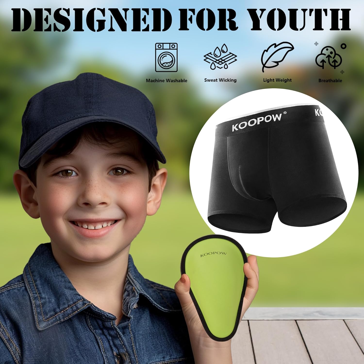 KOOPOW Youth Boys Compression Shorts with Soft Protective Athletic Cup, Boxer Briefs Underwear for Baseball, Football