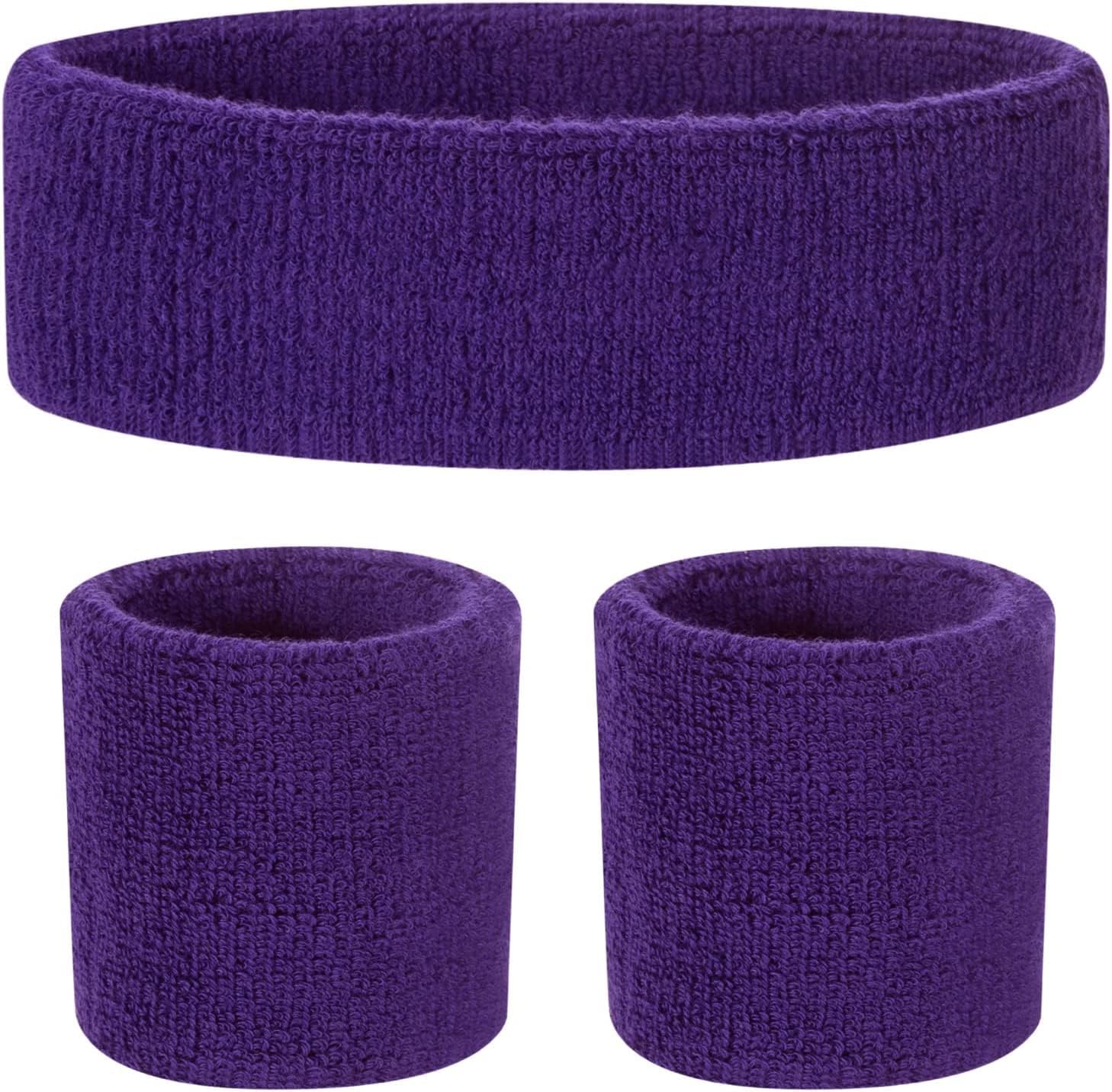 - •VERSATILE for both men and women, sports or 80s costume accessories & in color wars or other events. Colorful hot pink headband, blue headband, green headband & purple with matching wristbands.