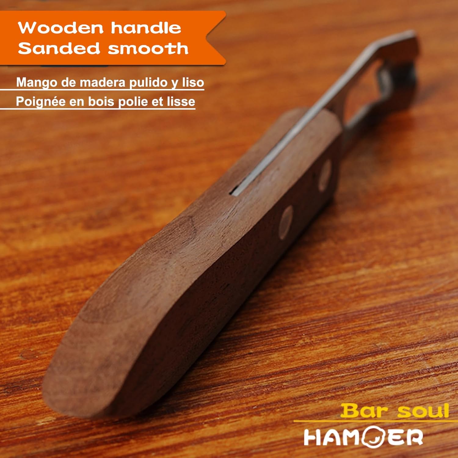 1.5mm thick stainless steel blade with polished walnut handle. Is the blade sharp enough? the blade is made of high quality stainless steel. Several customers on Amazon have mentioned that the blade is sharp enough to cut through citrus peels with ease. Is the handle made from a single piece of wood? the handle is made of black walnut wood and riveted to a stainless steel tip. And the wooden handle is made from a single piece of wood. Is it suitable for garnishing cocktails? This channel knife can be used to create garnishes for certain cocktails by cutting grooves in lemon or orange peels. Reviews on Amazon also mention customers use it for garnishing cocktails. Is this tool easy to grip? Yes, people find this tool easy to grip due to its walnut handle and sturdy construction. Can it be used on other fruits? While the HAMOER Channel Knife is primarily designed for citrus fruits like oranges, lemons, and limes, some customers have found it useful for other firm fruits as well. Channel knife+2in1Zester Zester + Channel knife Grater + 2in1 Zester Wide Grater + 2in1 Zester Grater + 2in1 Zester 2 Channel knife set Sharp stainless steel blades,Suitable for sourdough or homemade bread