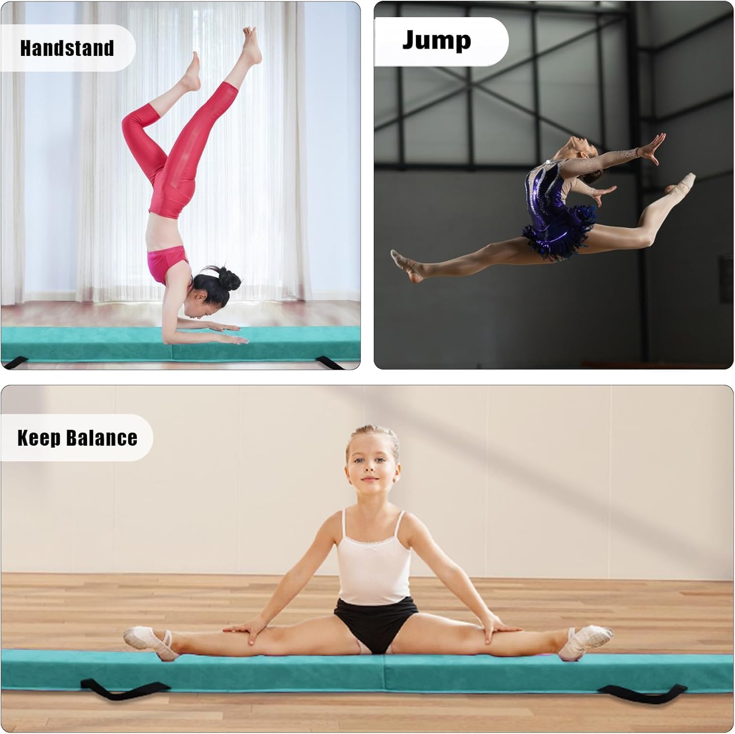 - •ANTI-SLIP BOTTOM: The special anti slip texture design at the bottom ensures that children will not move when they training on gymnastics balance beam. Comfortable suede surface prevents feet from slipping and softens hard landing during cartwheels, strides and jumps.