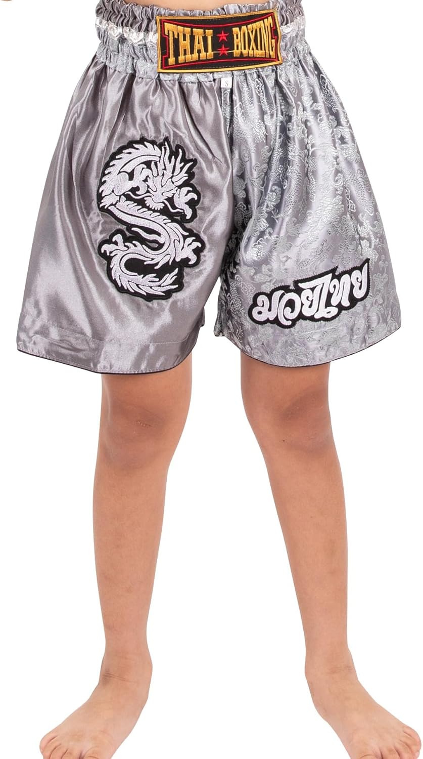 Dragon Muay Thai Shorts for Kids (2 Years - 12 Years) Girls Boys Boxing Trunks for Kickboxing MMA Youth