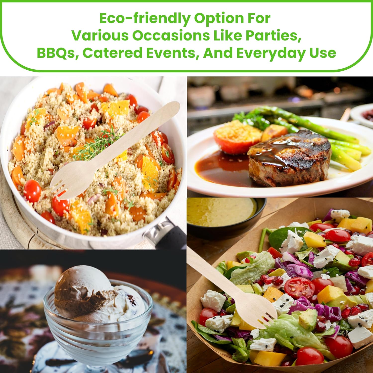 5.5" Disposable Wooden Sporks/Natural Wooden Utensils- Pack of 100ct