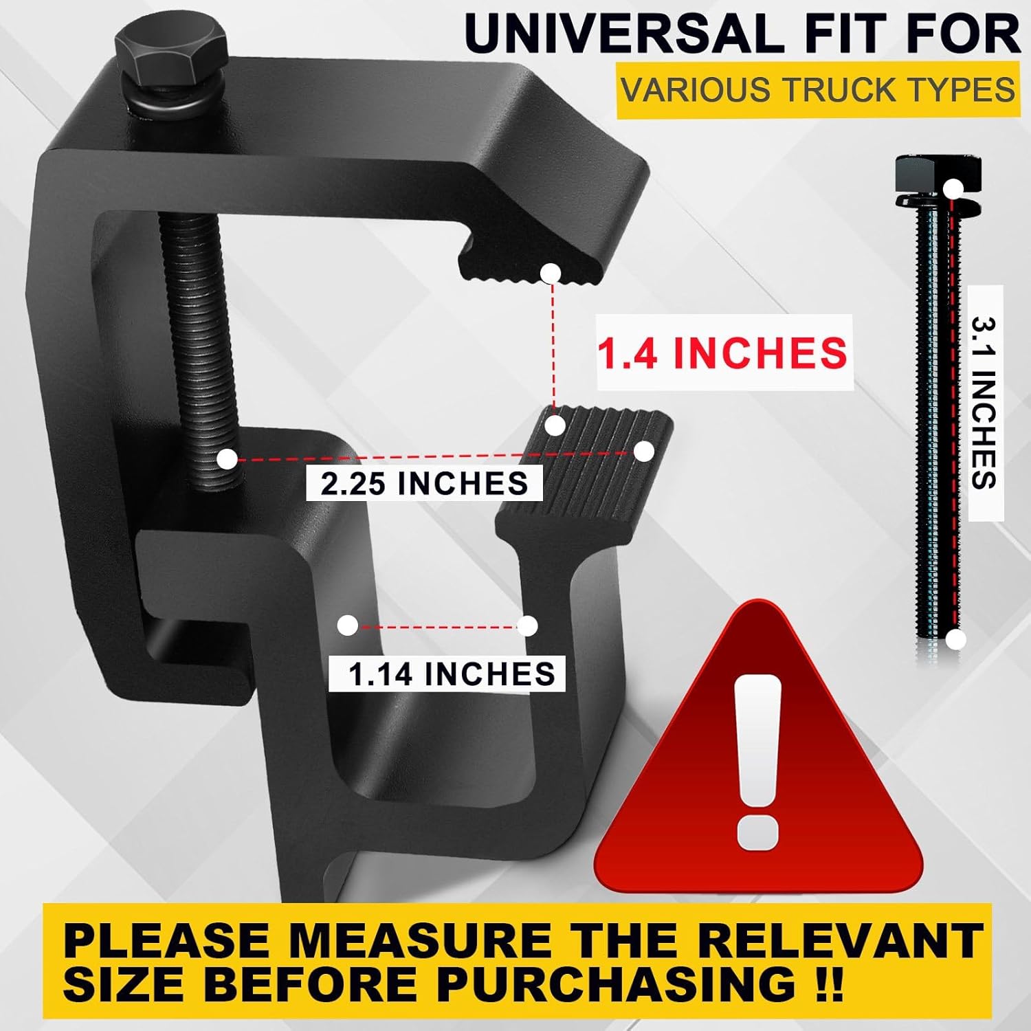 - •EASY INSTALLATION, WITHOUT DRILLING: No need to drill holes and worry about your car leaving traces of vandalism. Just secure the truck camper clamps pickup truck onto the bed, insert the screw into the designated hole, and proceed to fasten the screw with a wrench. Whether it's your first time using them or you're a frequent user, they're easy to attach